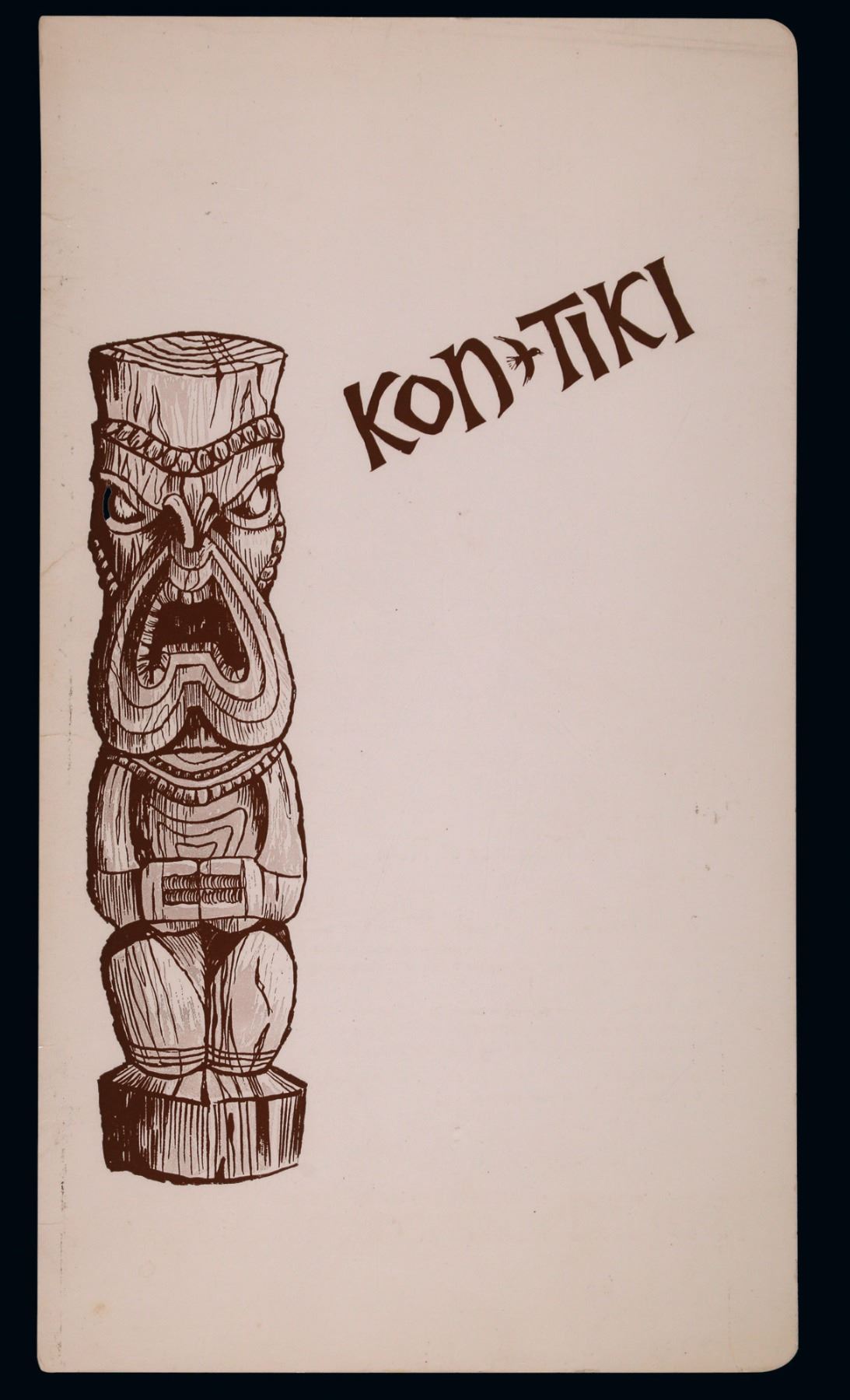 (1960s)* A later iteration cocktail menu for Steve Crane's KON-TIKI restaurant in the Sheraton-Waikiki in Honolulu, HI. VG+. 8.25"x14" closed.
