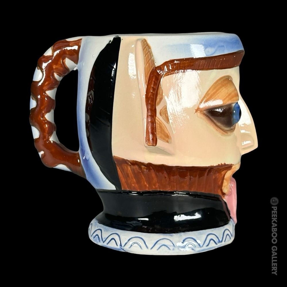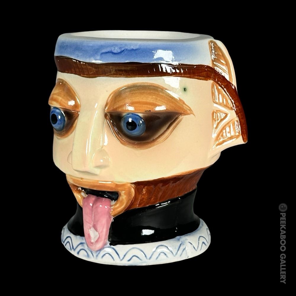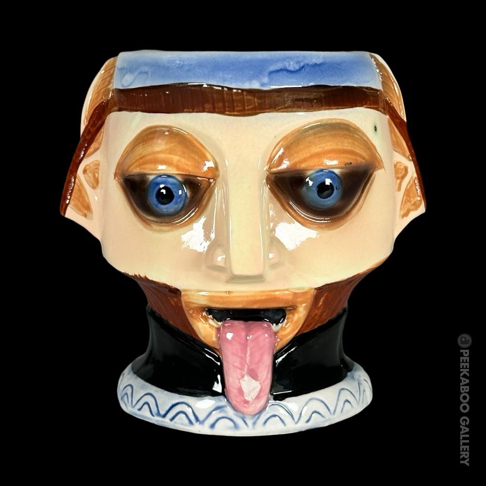 (1950s) Designed by Florian Gabriel and produced by HF Pottery for Steve Crane and Associates. Marked on the bottom. Also for the LUAU and KON TIKI. Retains foil production sticker. VG+ with typical wear. 5.75"x6.5"dia.