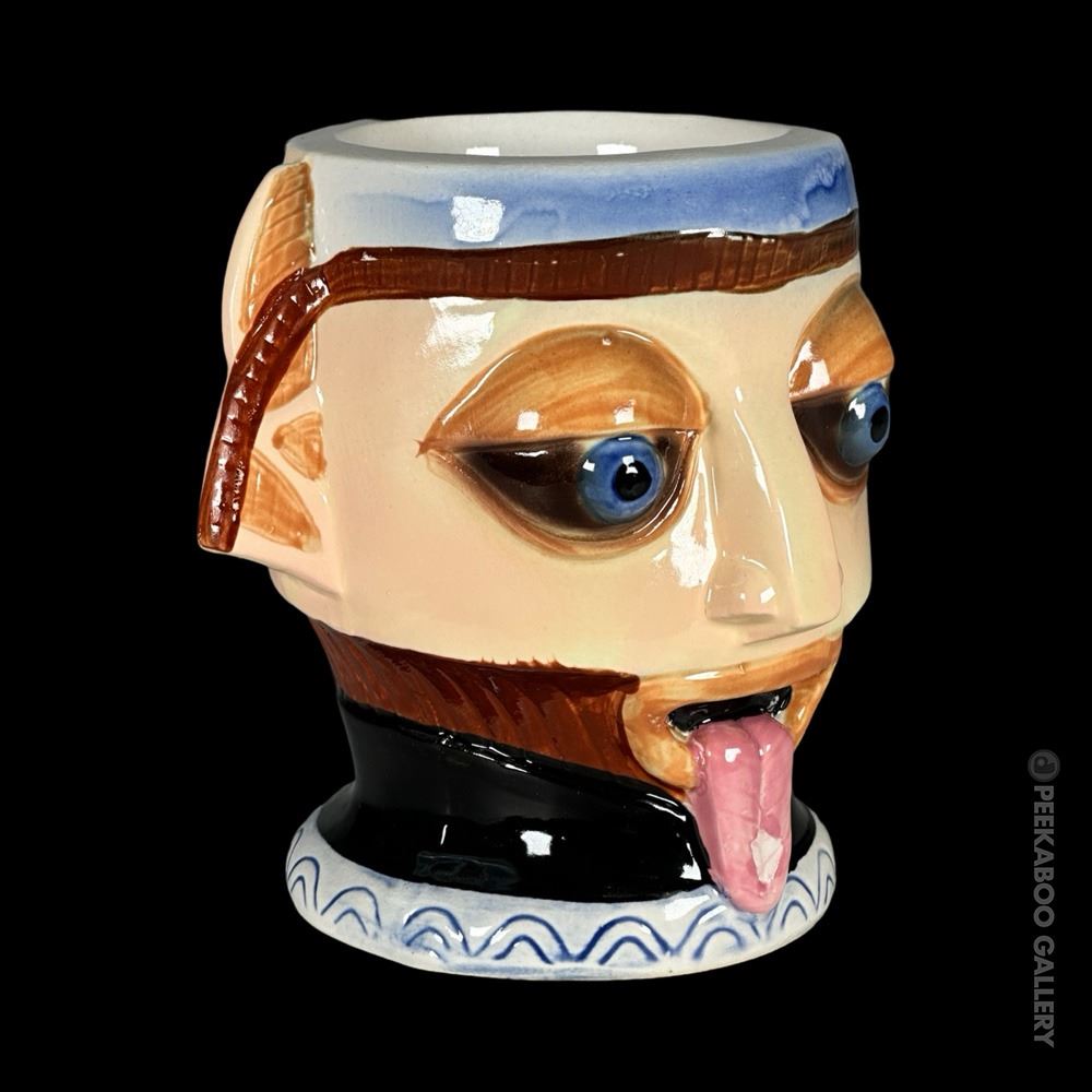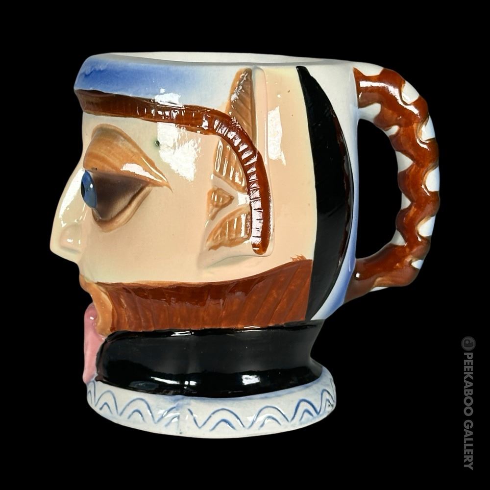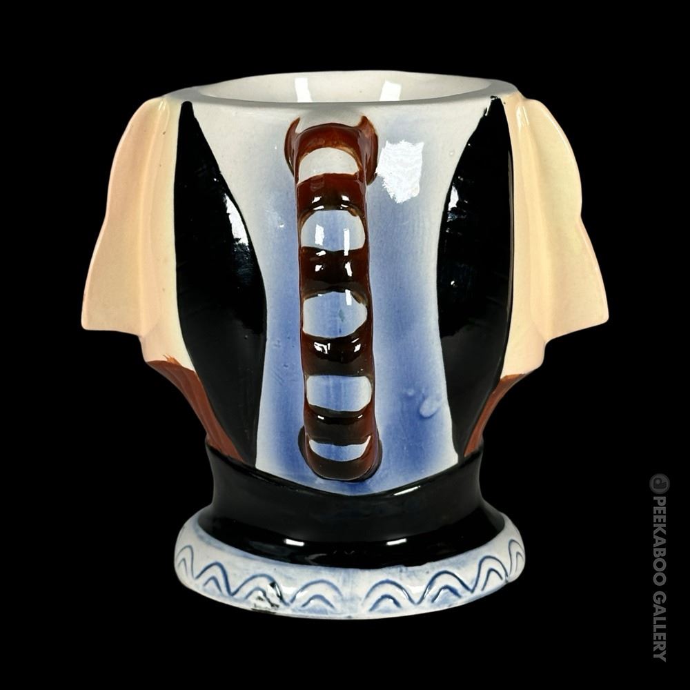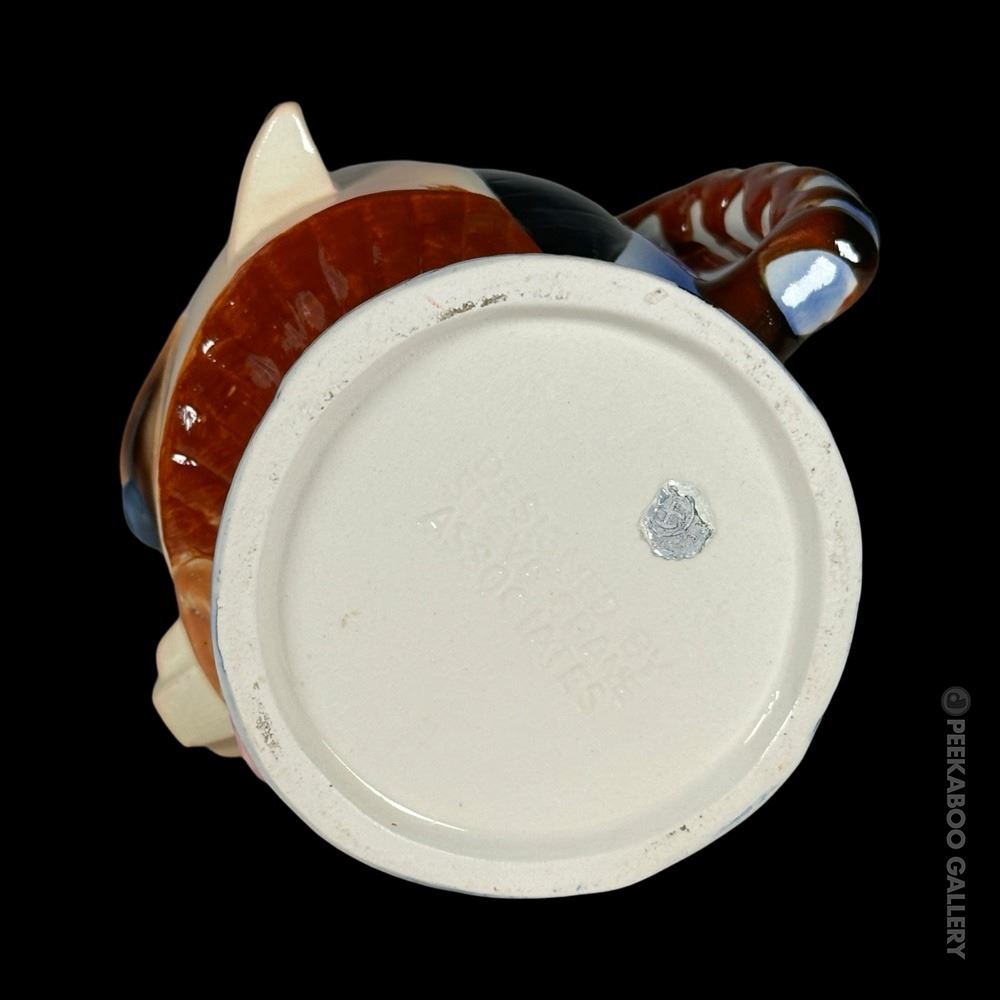 (1950s) Designed by Florian Gabriel and produced by HF Pottery for Steve Crane and Associates. Marked on the bottom. Also for the LUAU and KON TIKI. Retains foil production sticker. VG+ with typical wear. 5.75"x6.5"dia.