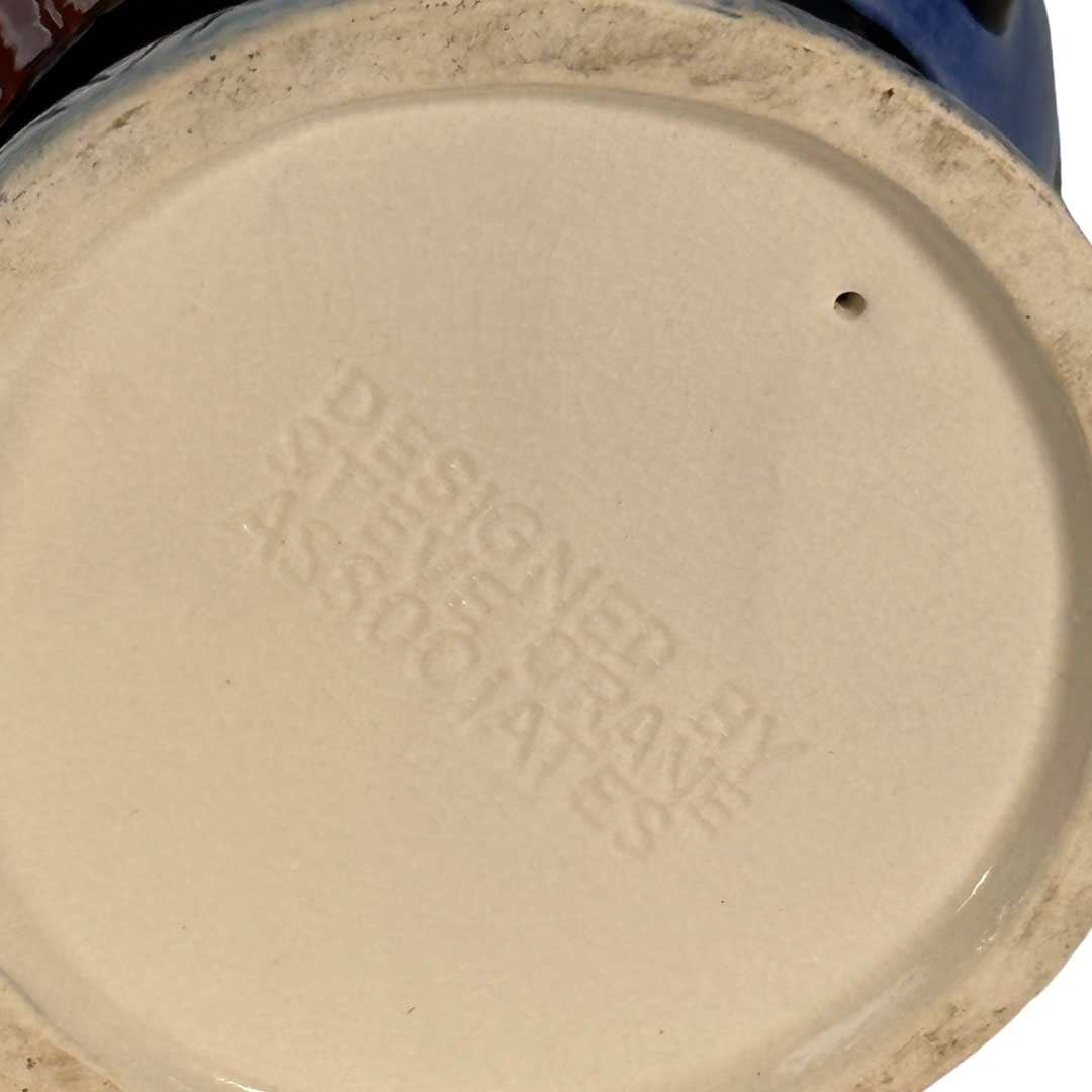 (1960s) Another stunner from the Steve Crane & Associates mug line from HF Pottery. Retains HF foil production sticker. Designed by Florian Gabriel. 6"x5.75". VG+ with minor wear.