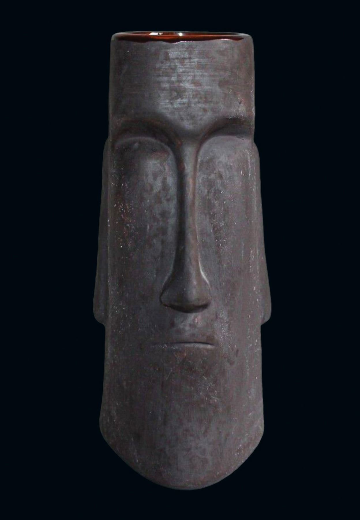 (1990s) A scarce European restaurant mug by manufacturer APS. Classic stone moai figural. VG+. 6.5" tall.