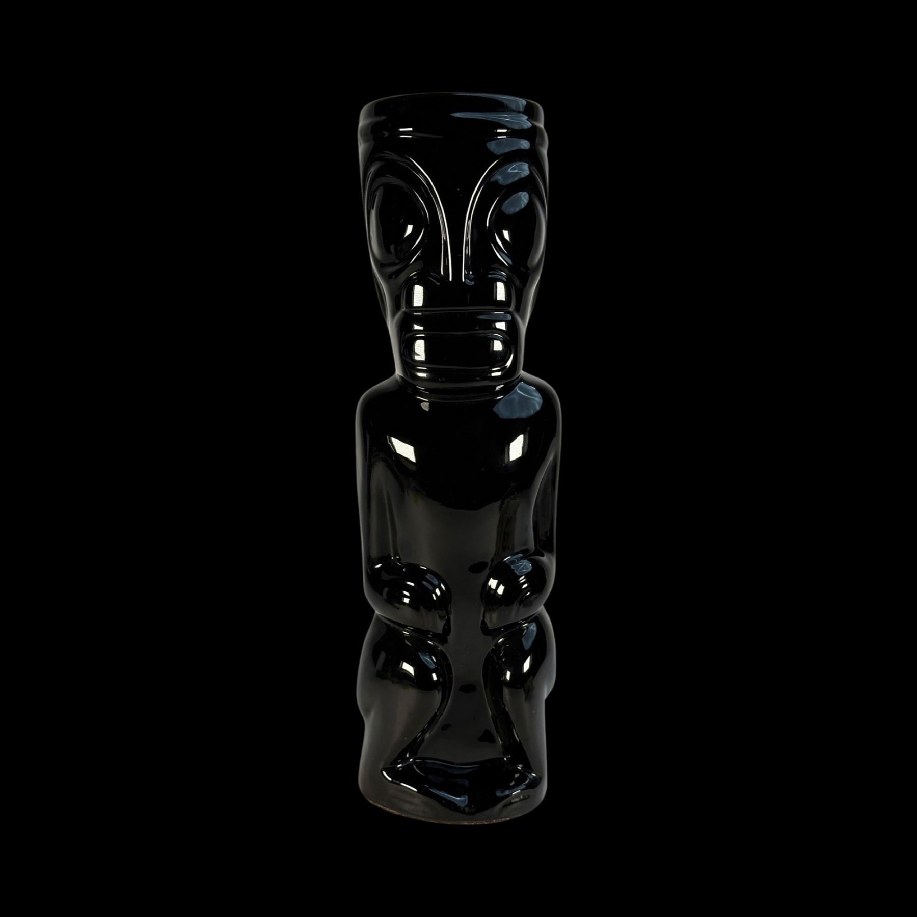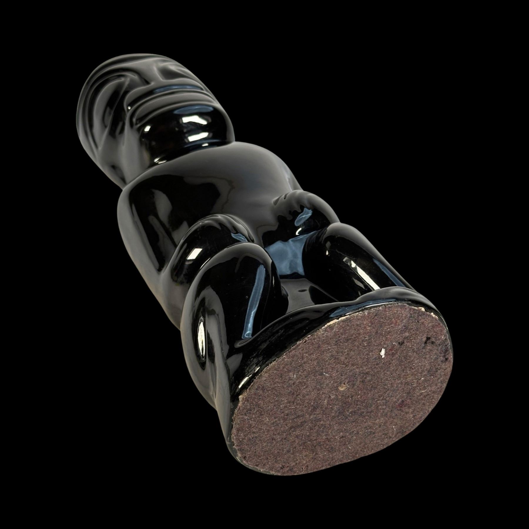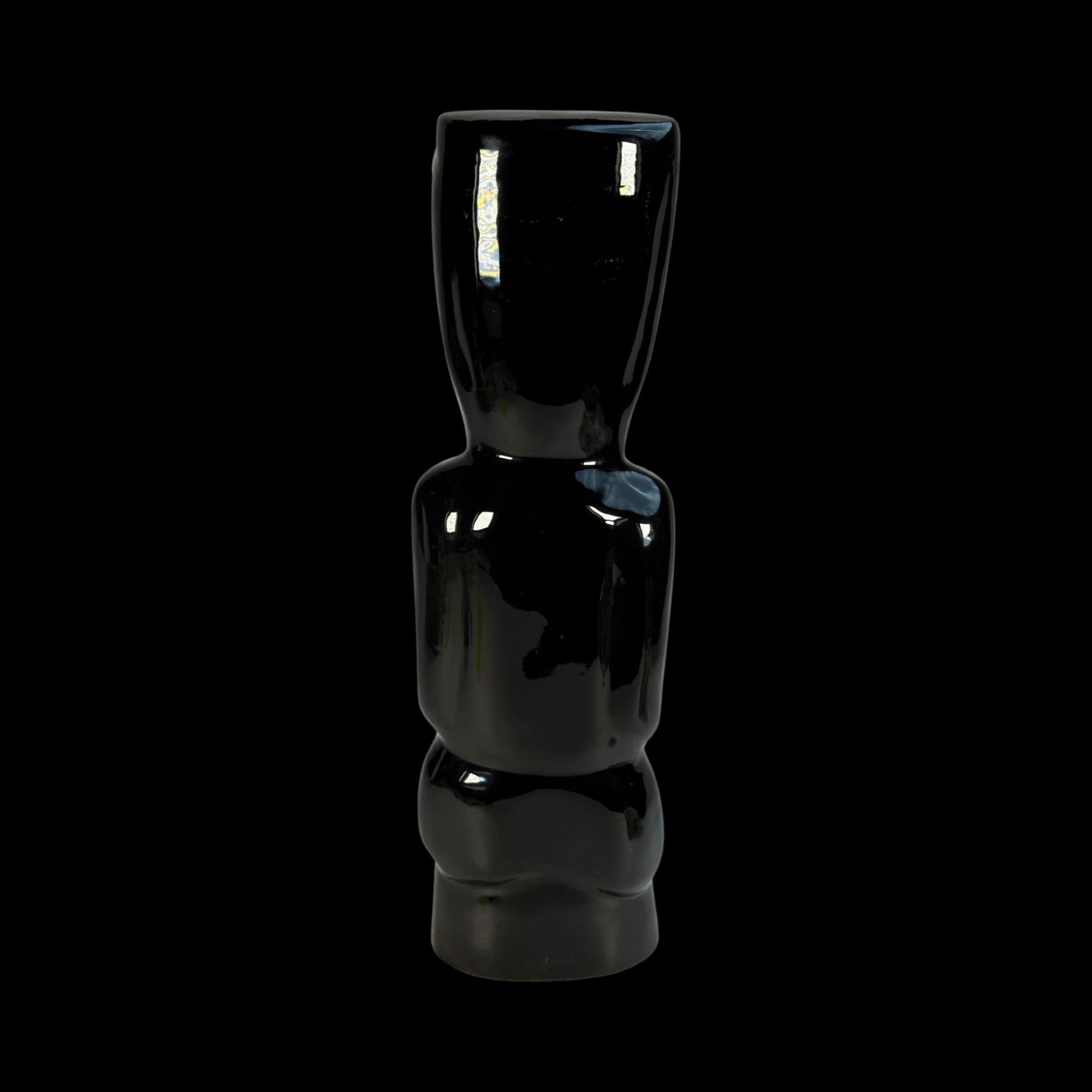 (1950s) This piece was produced in several configurations during the 1950s and 60s, most probably in its initial use as hotel decor in the islands. We had a few of this same figure as hotel reading lamps at one point. Nice sculpt of a stylized Marquesan Tiki figure. VG+. 6"dia x 18.5".