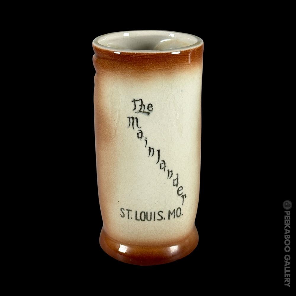 (1960s) Here is the tall version of the Mainlander mug. VG+ with typical wear. 6.25"x3.25"dia.