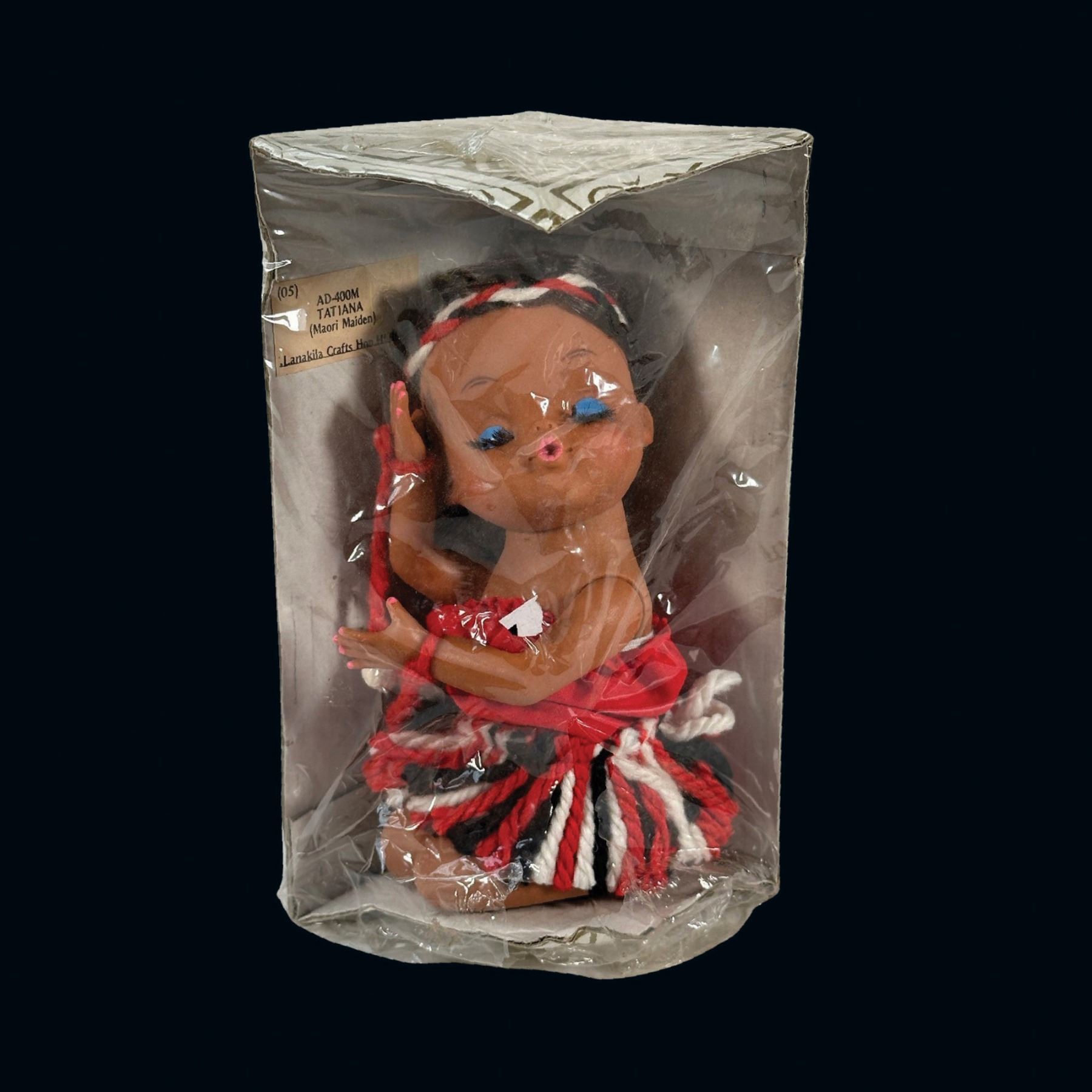(1960s) Cute native girl doll in traditional garb. In original packaging which has wear but unopened and intact. VG+. 4.25"x9"x4.25" in packaging.
