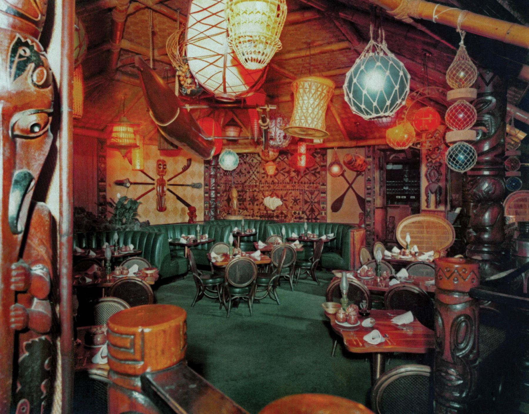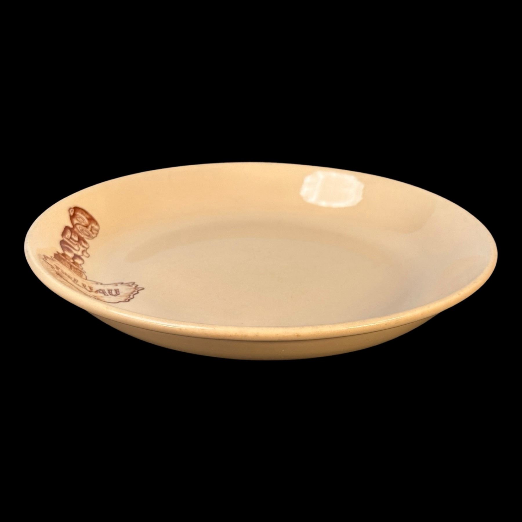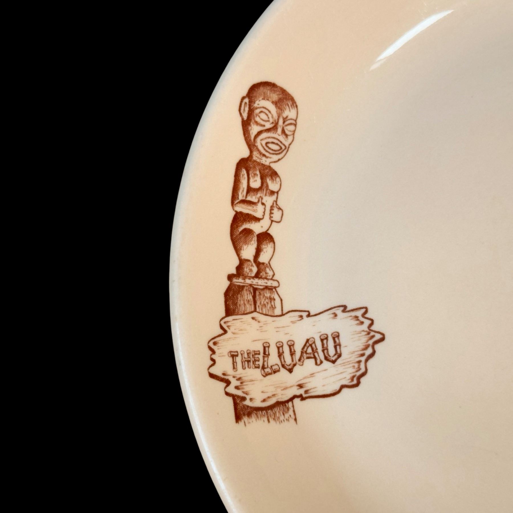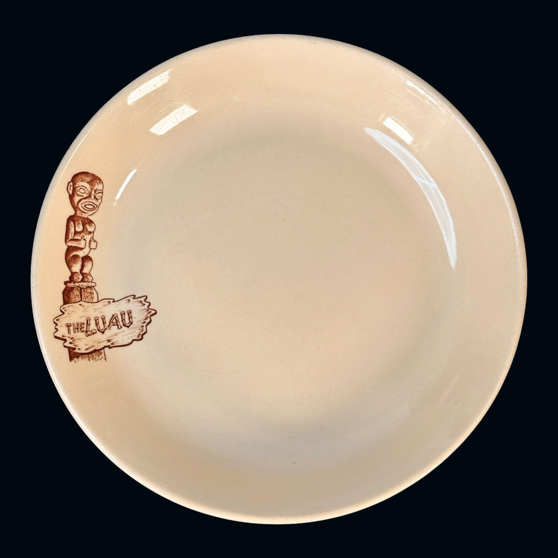 (1950s) A unique configuration serving plate from The LUAU. The high rise edge was for serving noodles and pasta. A somewhat rare piece of serving ware. VG+. 9.25"dia.