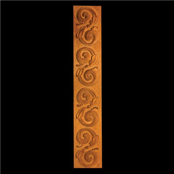 (1960s) Original OA decorative wall trim panel master pattern carving. 7.75"x72.25"x1.75". VG+ with typical wear.