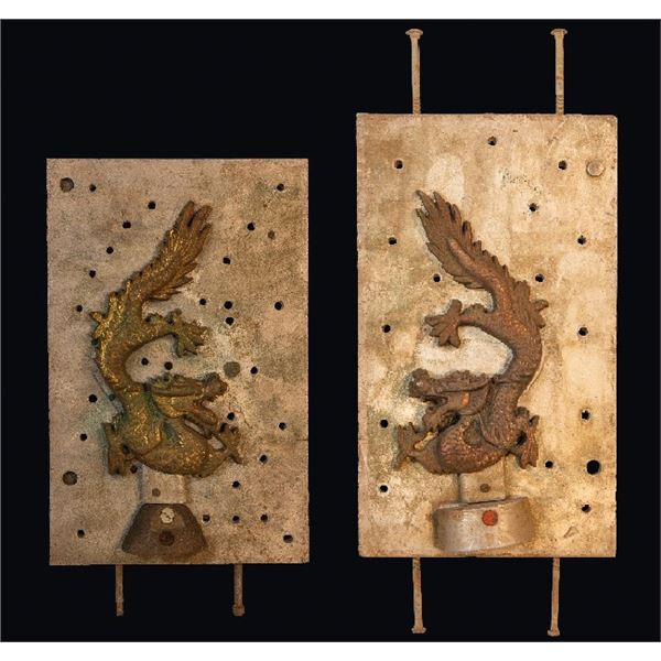 (1960s) A rare set of mold masters in bronze for Chinese Dragon door pulls. One is for left facing and the other is for right facing. These were used