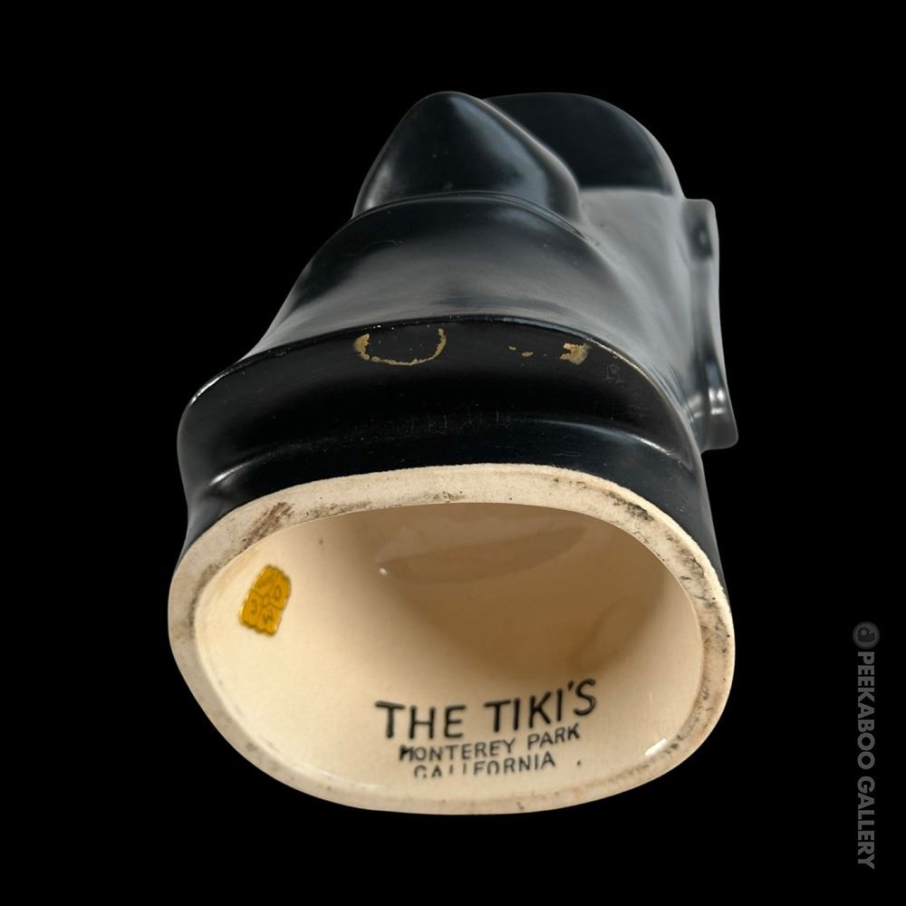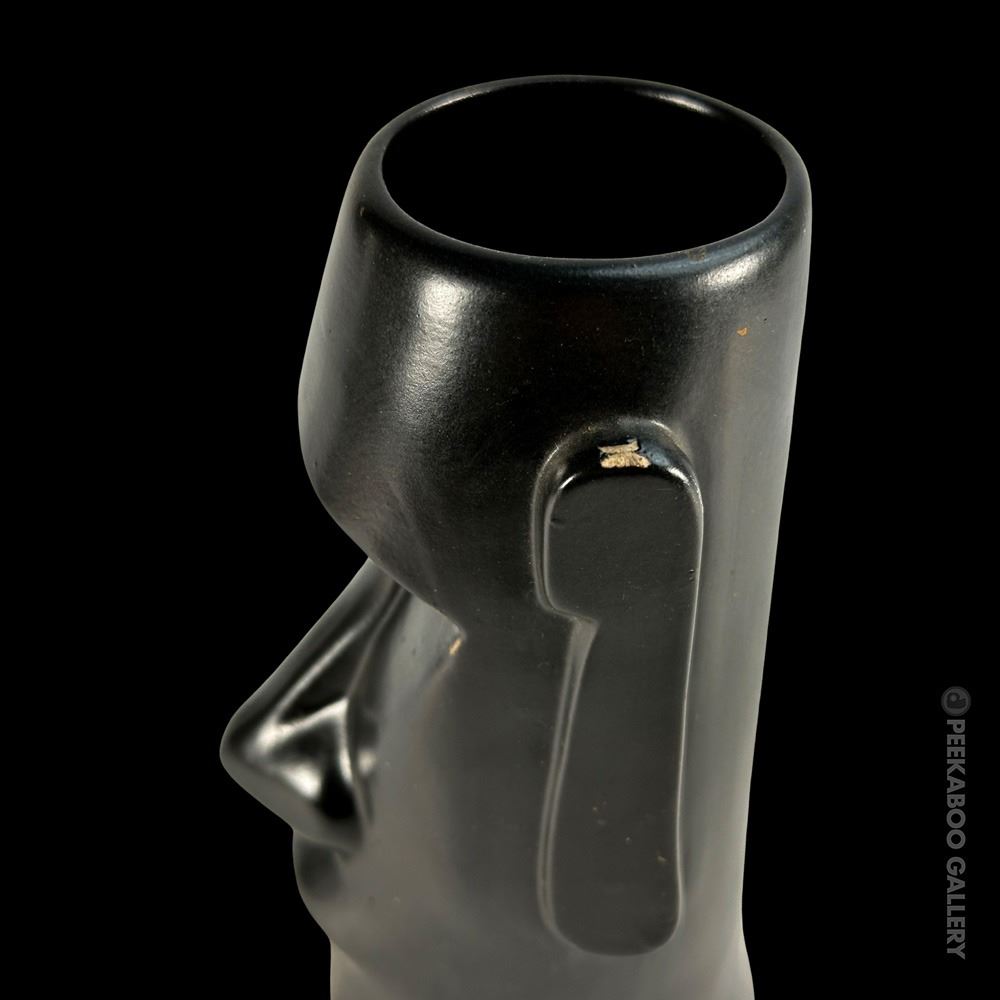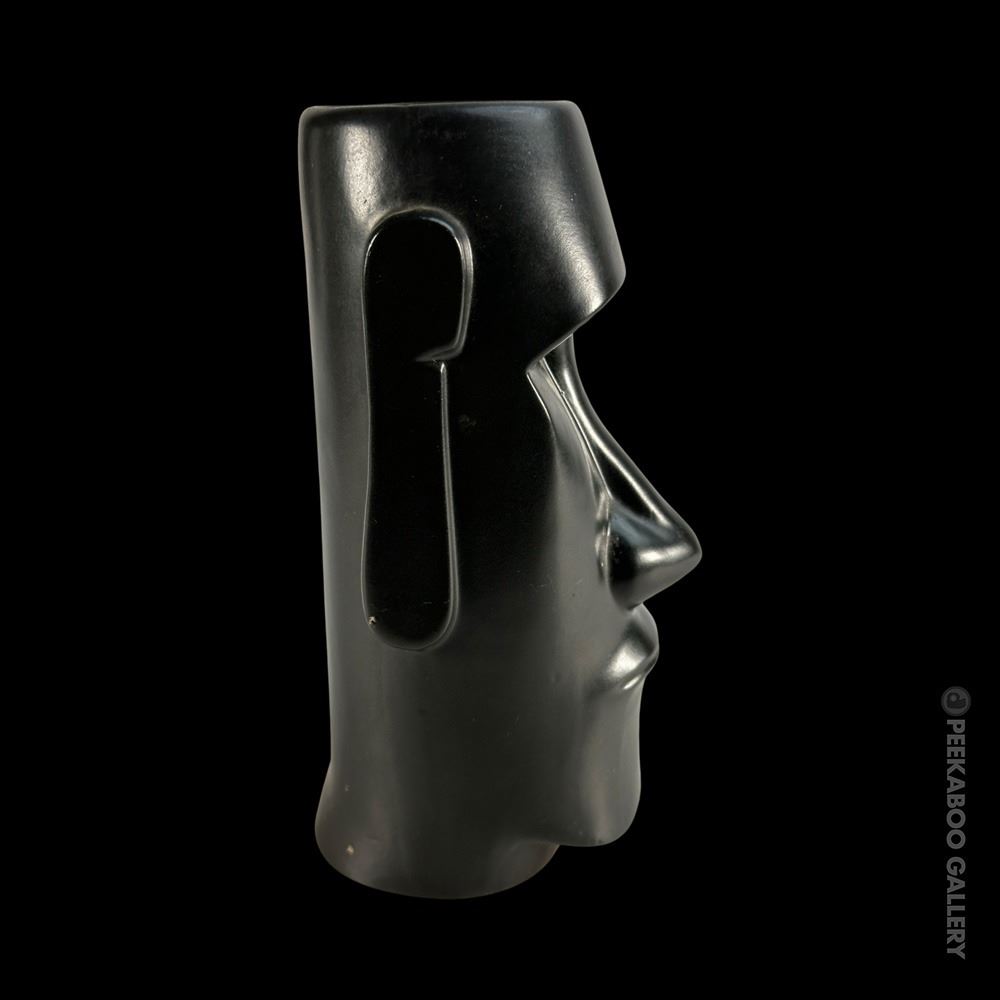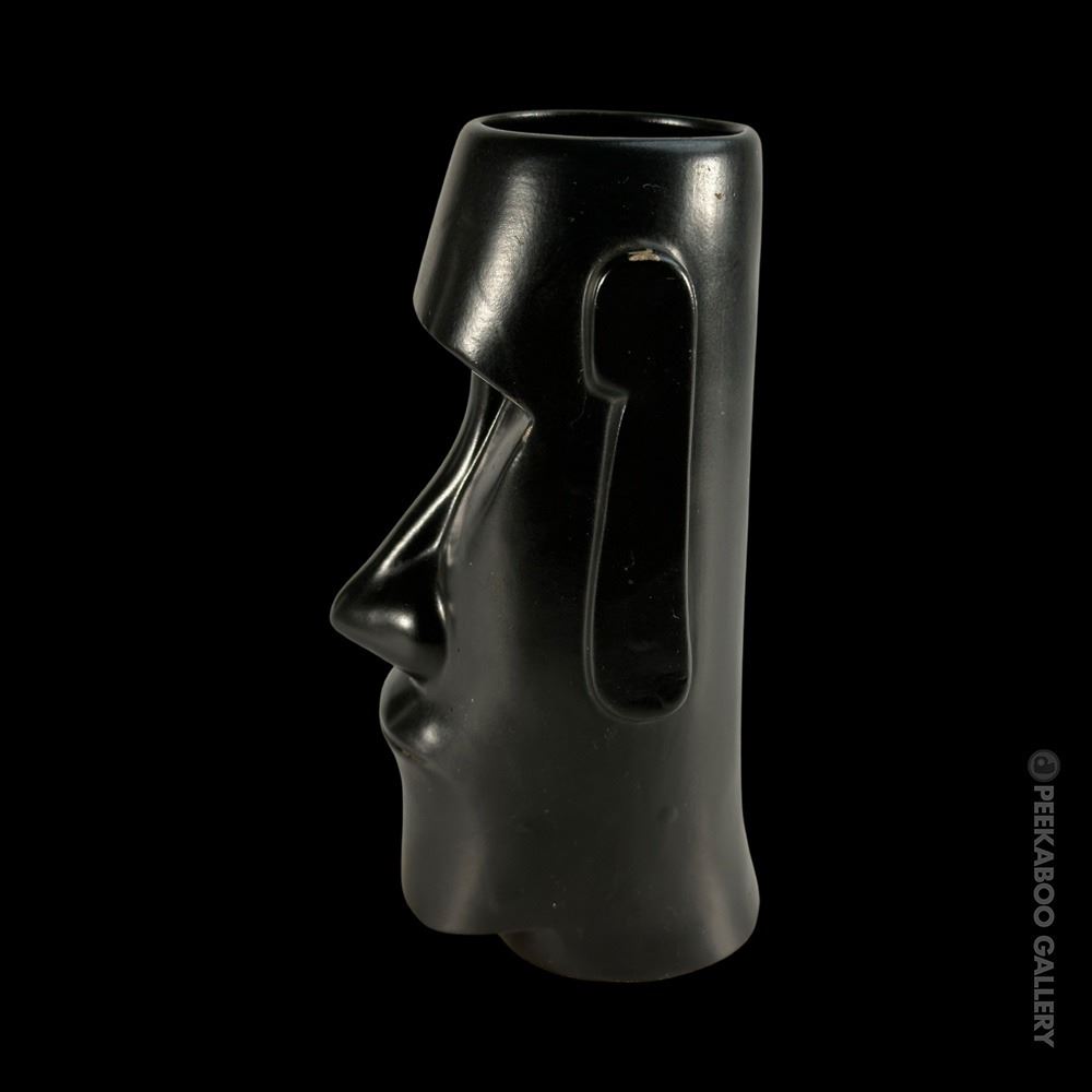 (1960s) The king-daddy of Moai mugs, actually commissioned by Danny Balsz through OMC based on a carving by LeRoy Schmaltz of Oceanic Arts. The original version of this Moai was made by OA for use as first a Tiki table lamp and then as a matching table lighter. As LeRoy recalled, Danny "borrowed" the master carving for a few months while he had OMC copy it for use as his first Moai mugs. Eventually, this mug became an OMC catalog item with several other businesses using it with their particular branding such as Trader Dick's and The Fireside bar in Wisconsin. VG+ with production flaw in the glaze under the chin. 7.5"x4"dia.