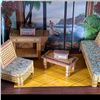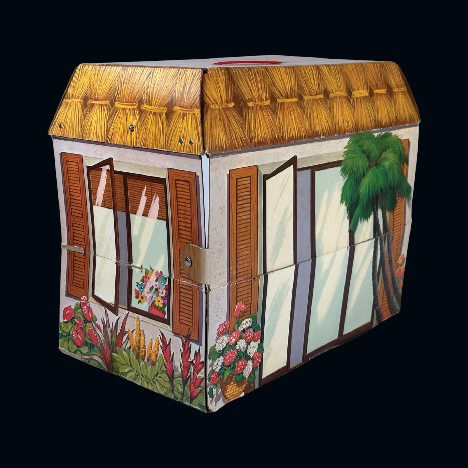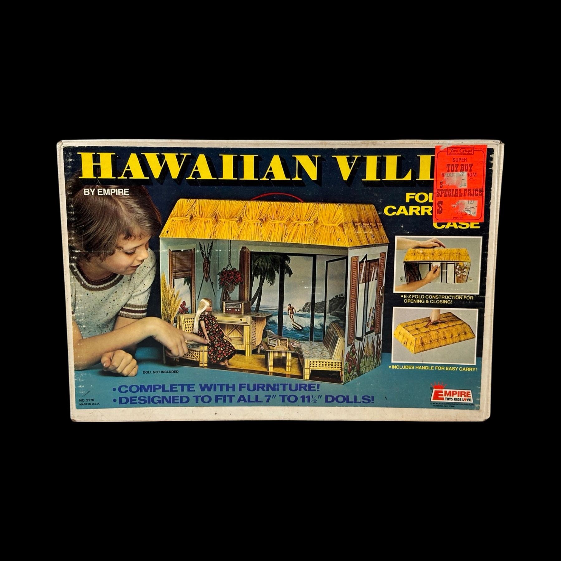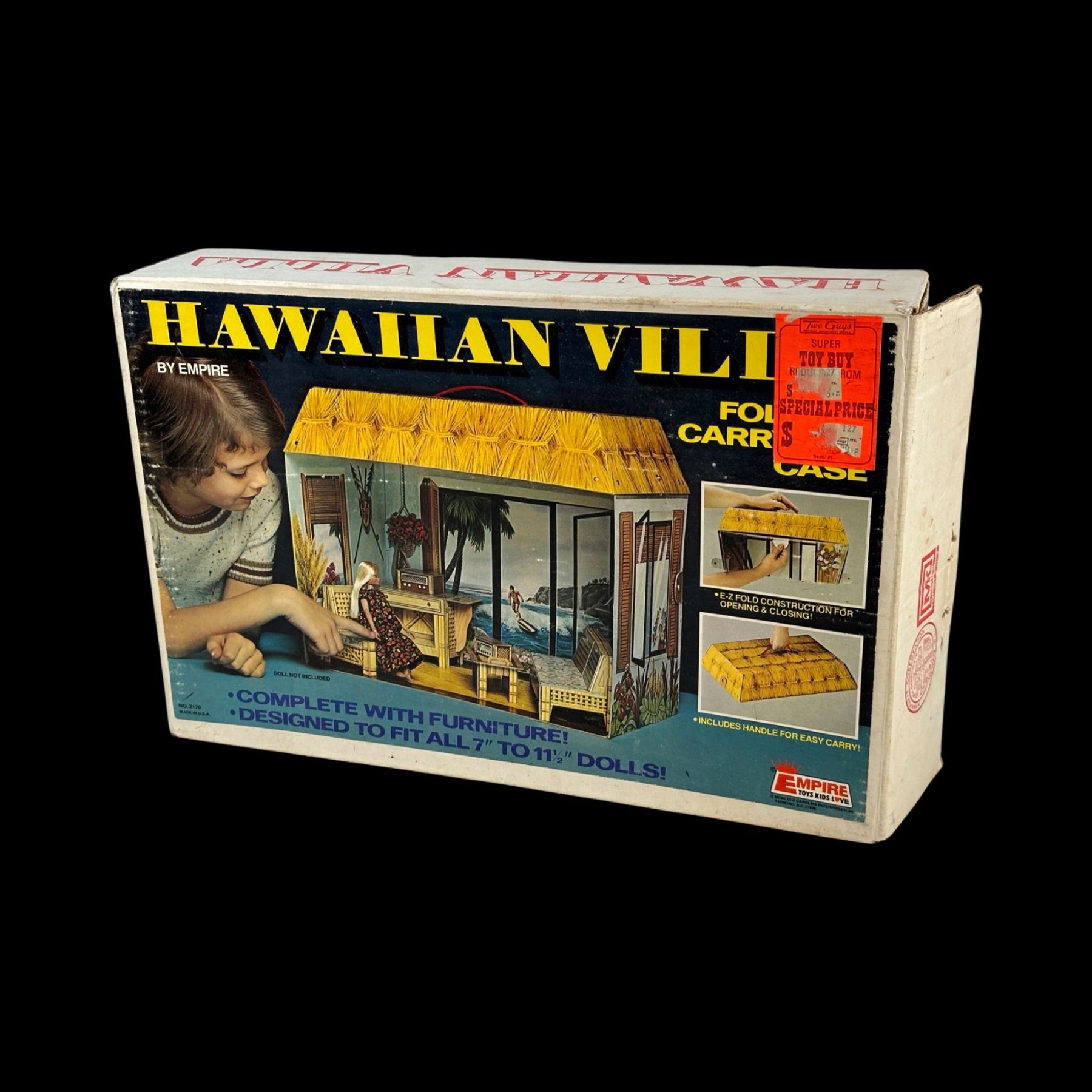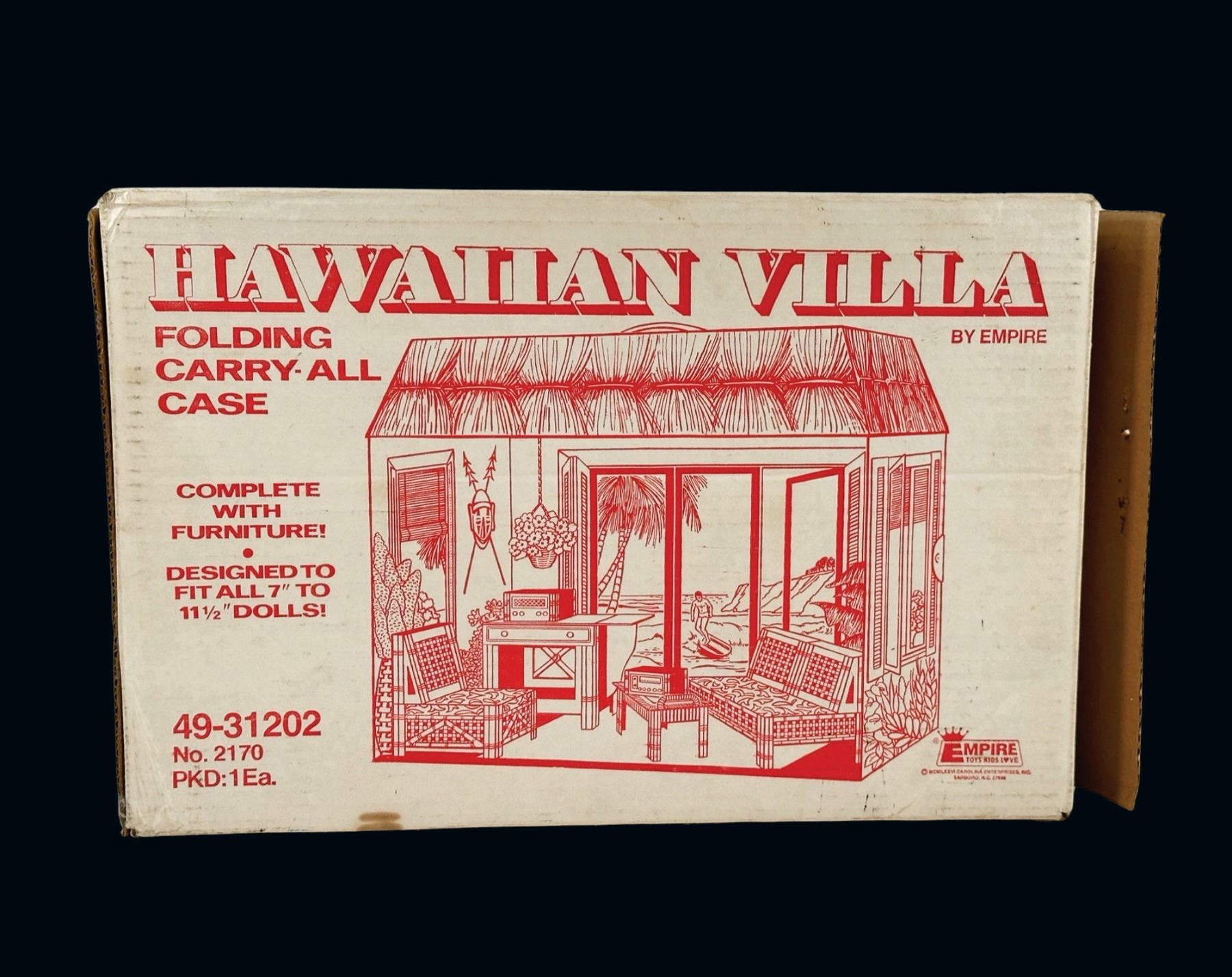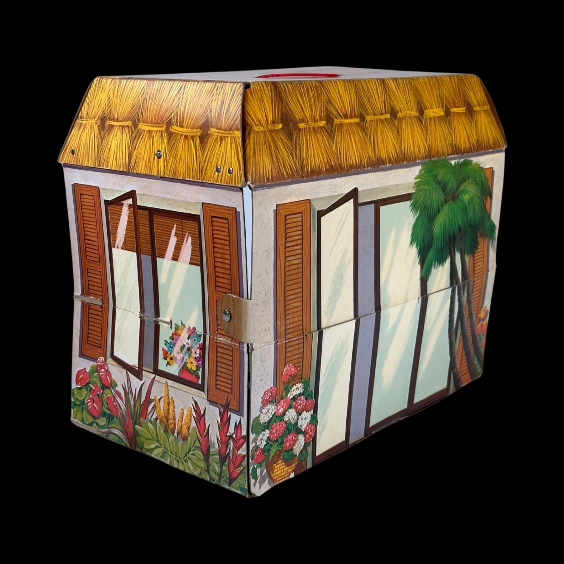 (1976) One of the Holy Grails of Tiki-Kitsch! This knock off "Barbie-Centric" toy was made as an off brand accessory to your authorized Mattel toy. It screams 1970s Hawaii featuring the type of villa room one would encounter in mod-Waikiki. In original box. Displays beautifully. VG+. 17"x11.5"x4".