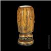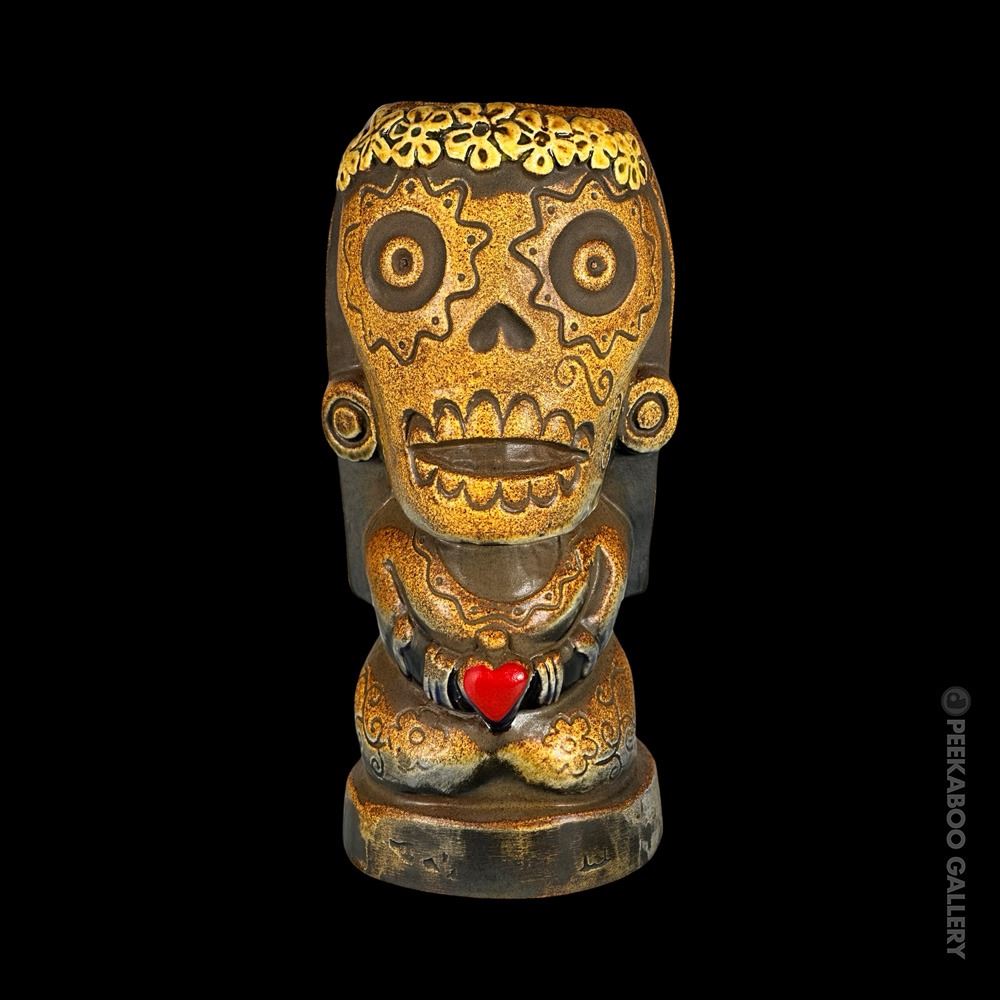 (2020) Designed and produced by Tiki Diablo for Tiki Ko in Bakersfield California. This yellow crown edition was limtied to only 45 mugs with this glaze. VG+. 8.75"x4"dia.