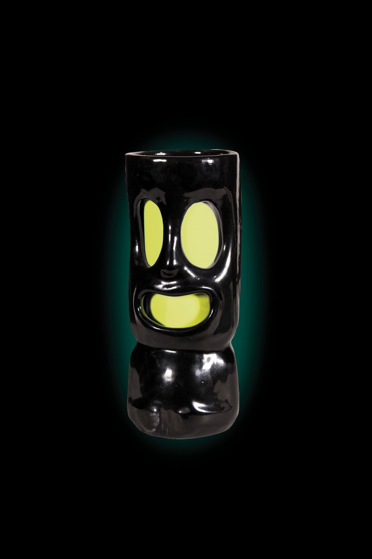 (1960s) Here's a rarity. Toby Tobeckson is the elusive, TOBY of TOBY DESIGNS. He was a friend and colleague of Bob and LeRoy, and often came by OA to share some of his latest wares and test prototypes. Here is a rare ceramic Toby Votive Lamp. It has openings in the large eyes and mouth and was made to either drop a votive candle inside the bottom of the lamp or affix a traditional hurricane shade at the top opening. We sold that style prototype in the last auction. Here is one of the votive configurations. Rare. 6.5" tall. VG+ with typical wear.