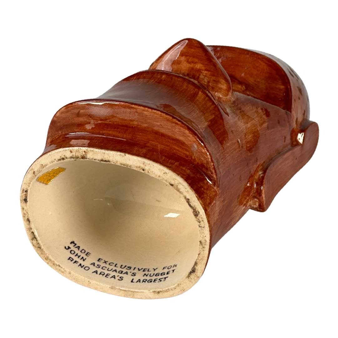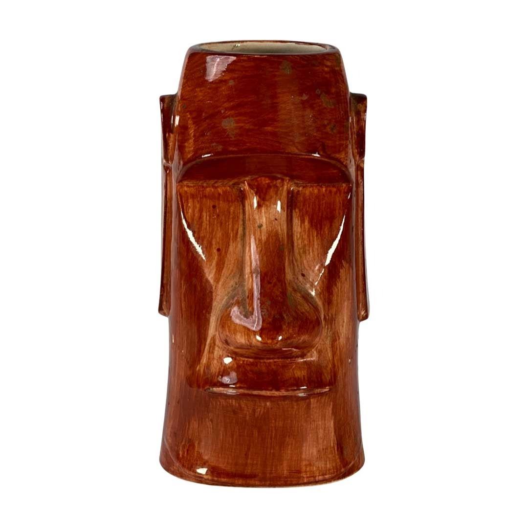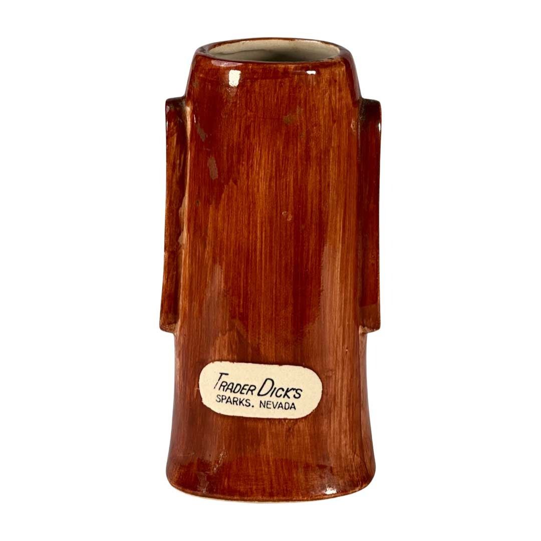 (1960s) Tall brown glaze Moai from Trader Dick's in Sparks, Nevada. Retains OMC sticker. 7.25"x3.75". VG+.