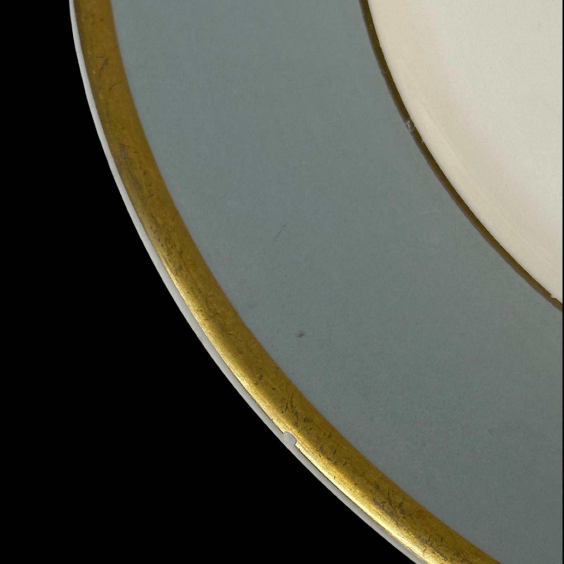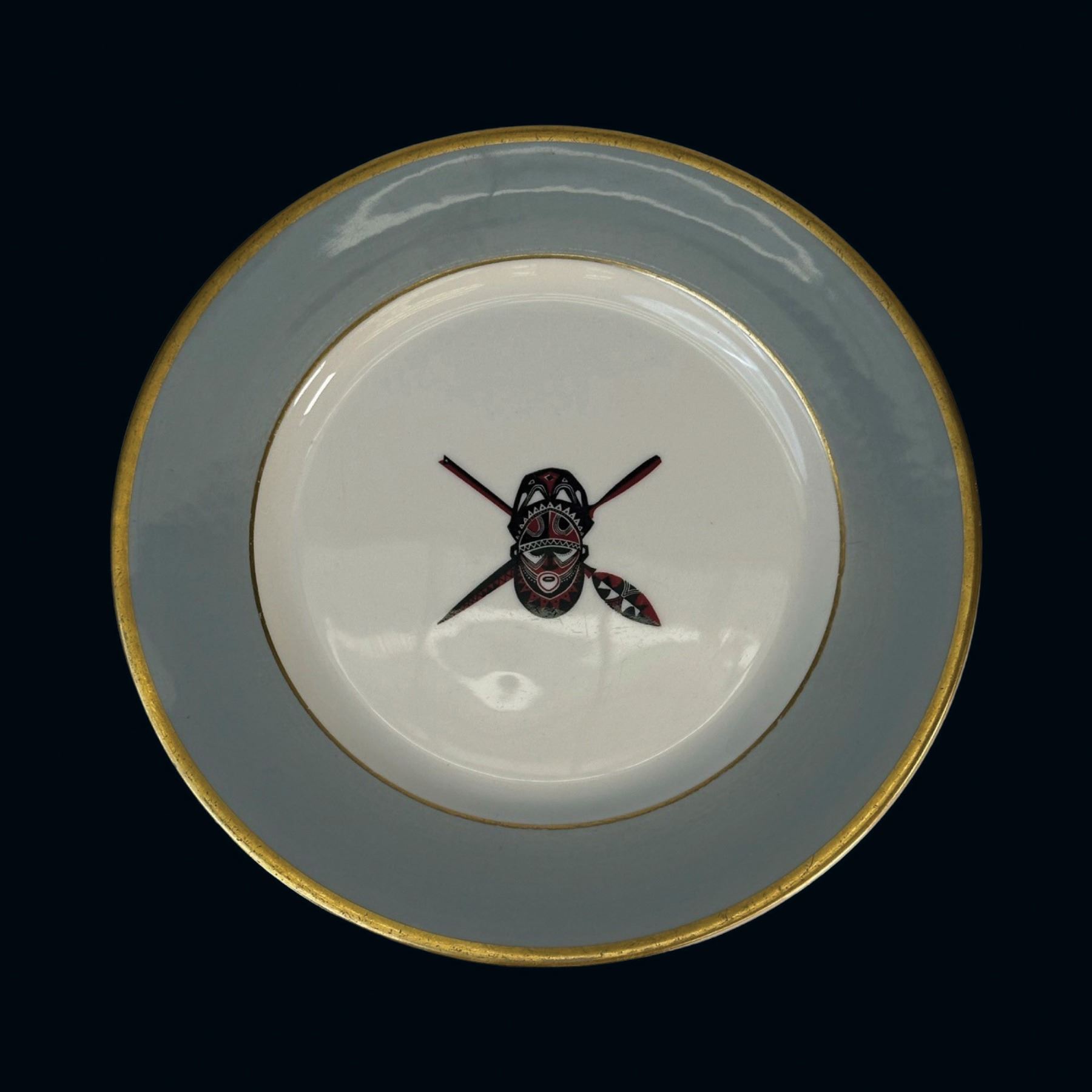 (1980s) A lovely gilded rim plate from Trader Vic's. These highly decorative dishes were usually presentation place-holders for when guests were first seated and removed and replaced with appetizer plates upon the serving of that portion of the meal. Classy joint! VG+ with small fleabite chip on rim. 10.5"dia.