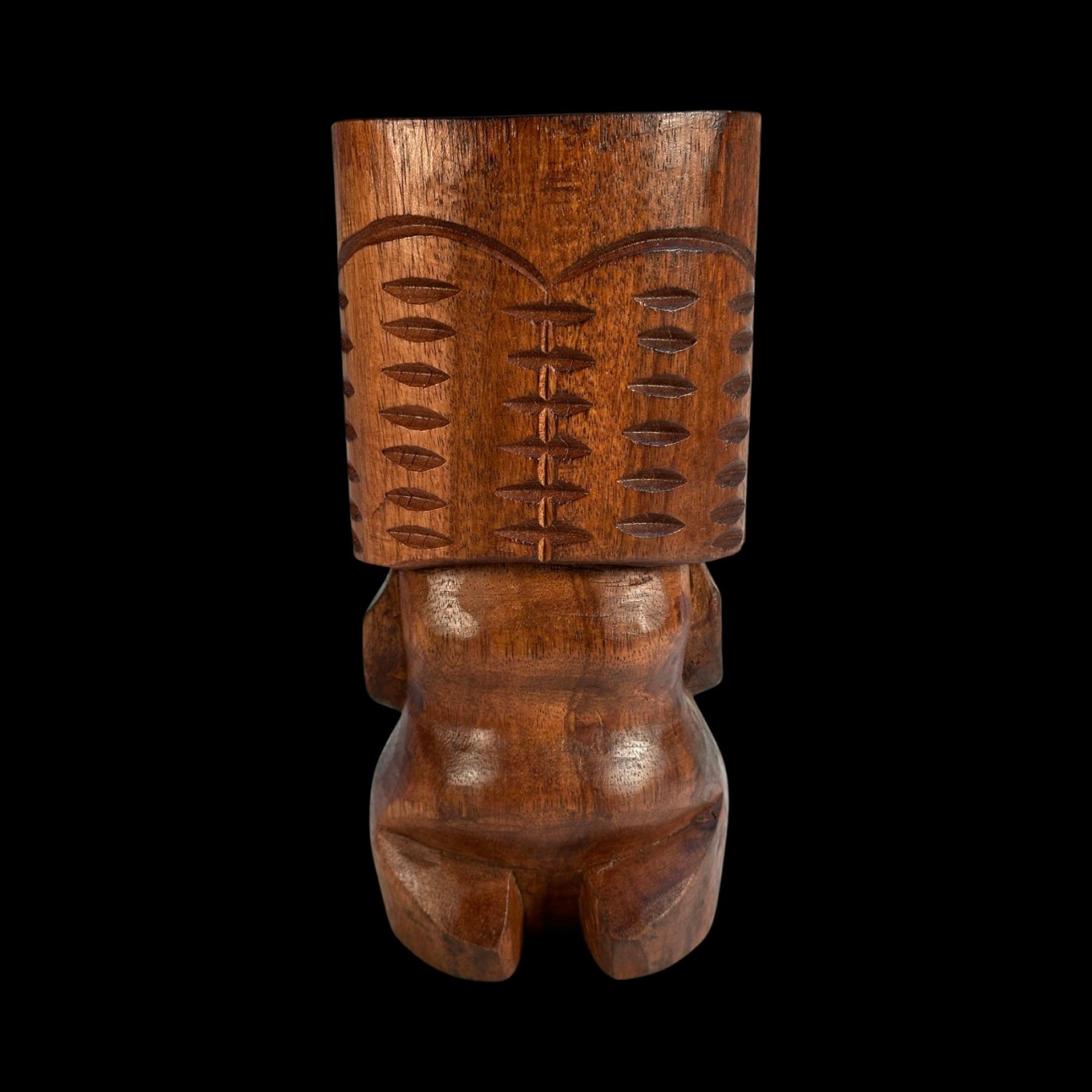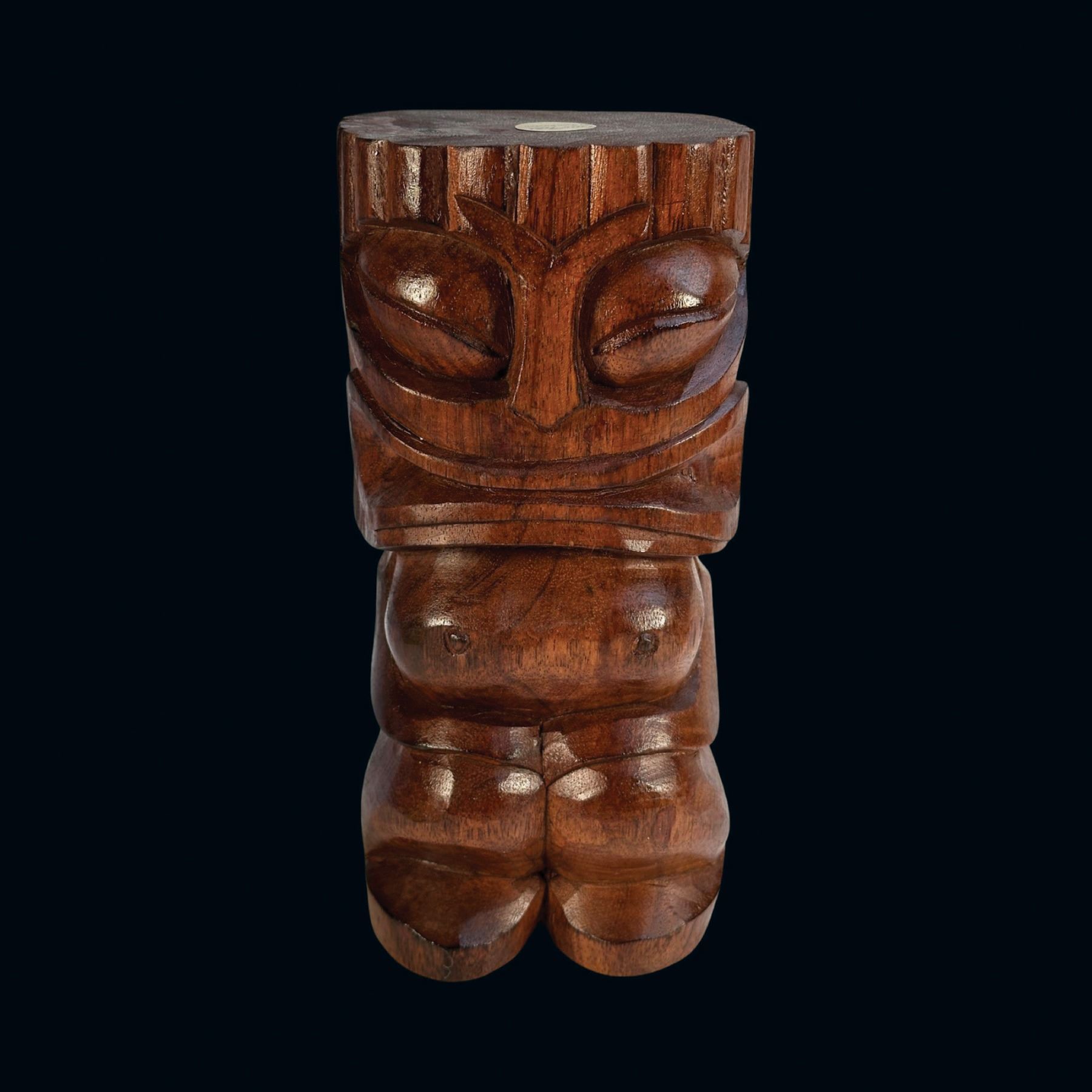 (2022)* "Surf God" female Tiki from Sven's "True Tiki" line of carvings. VG+. 5"dia x 10.75".