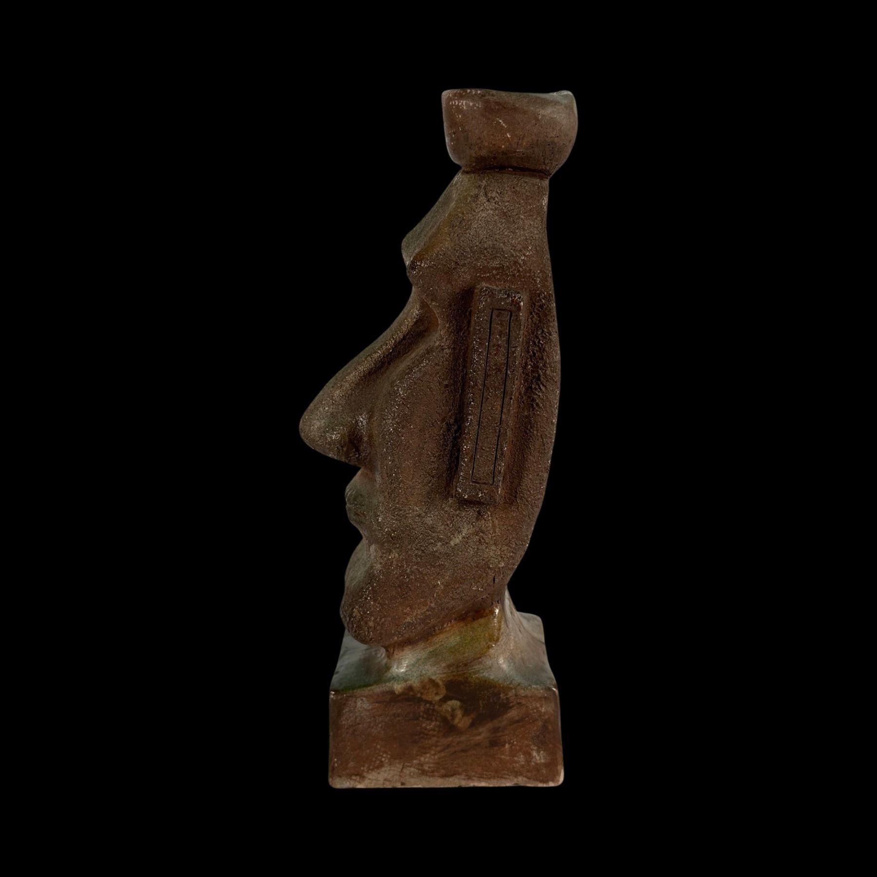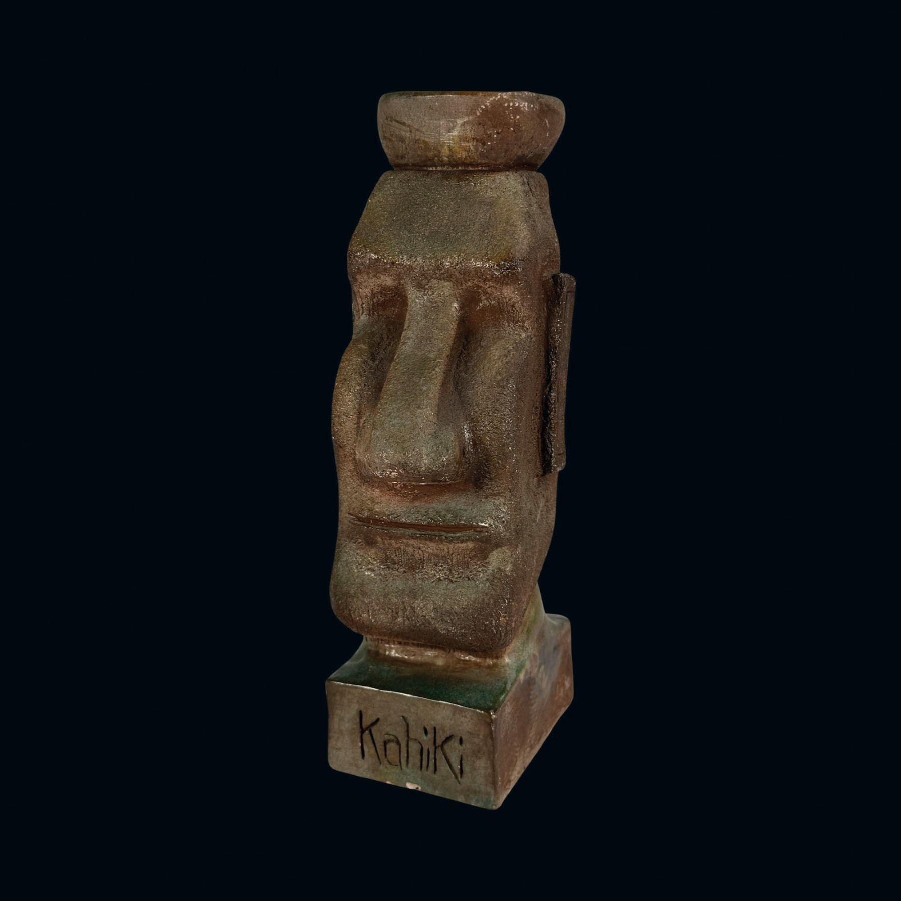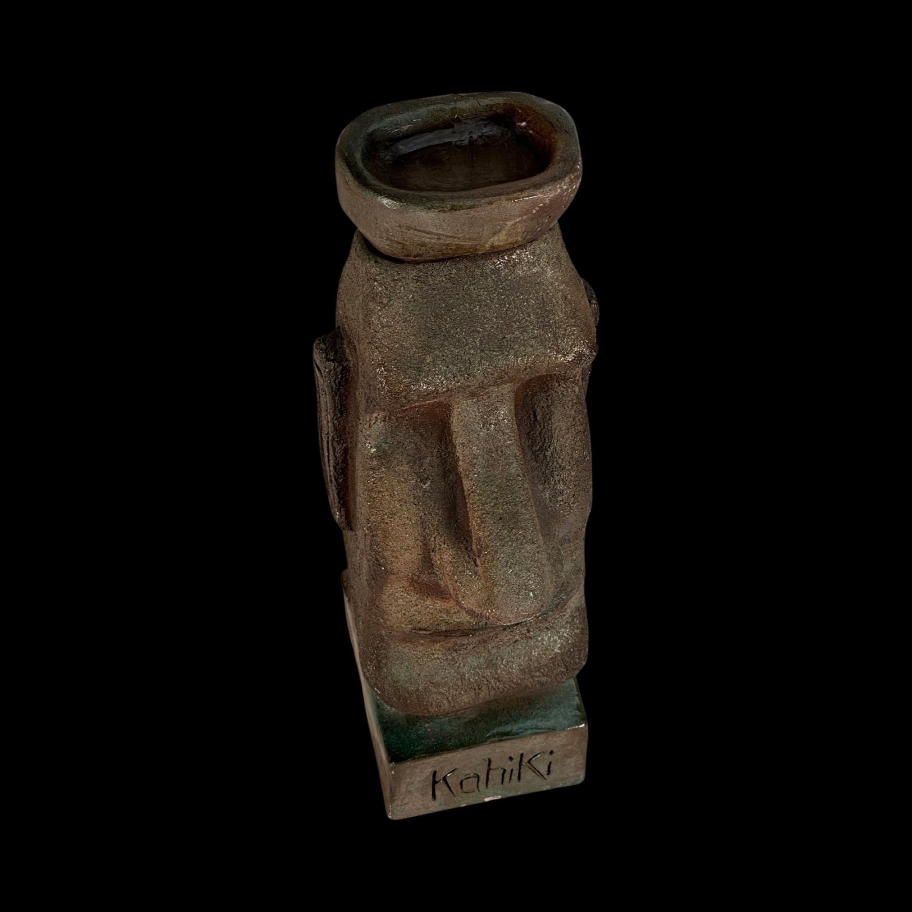 (1960s)* This is a miniature version of the giant Kahiki entrance Moais and can be used as an incense burner mimicking their flaming top knots. Jack Hite designed and hand manufactured these and other Tikis for the Beachcomber gift shop at the restaurant. He also created a good number of the full decor tikis in the venue. Very few of these were made and thusly, scarce. VG+ with typical wear. 3.5"x10.25"x3.5".