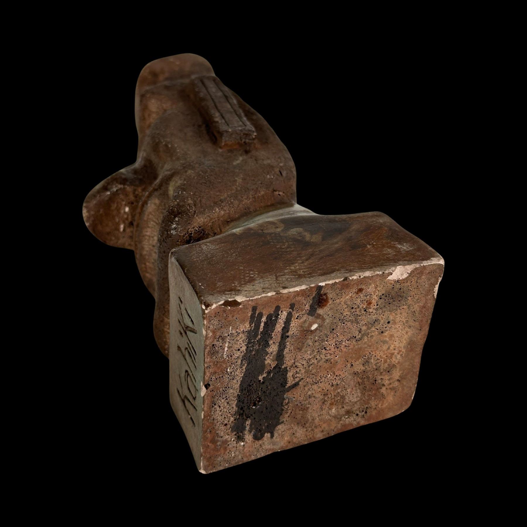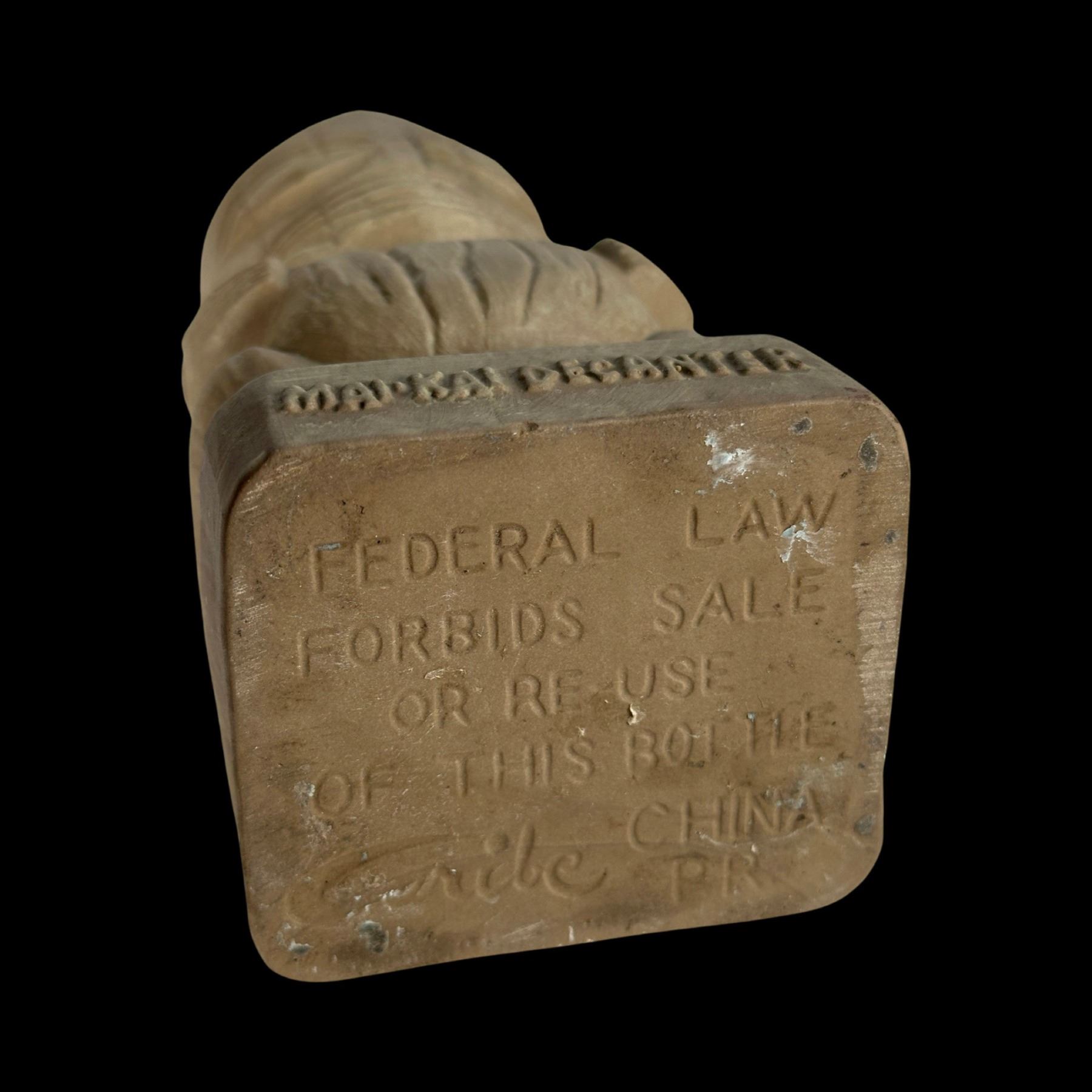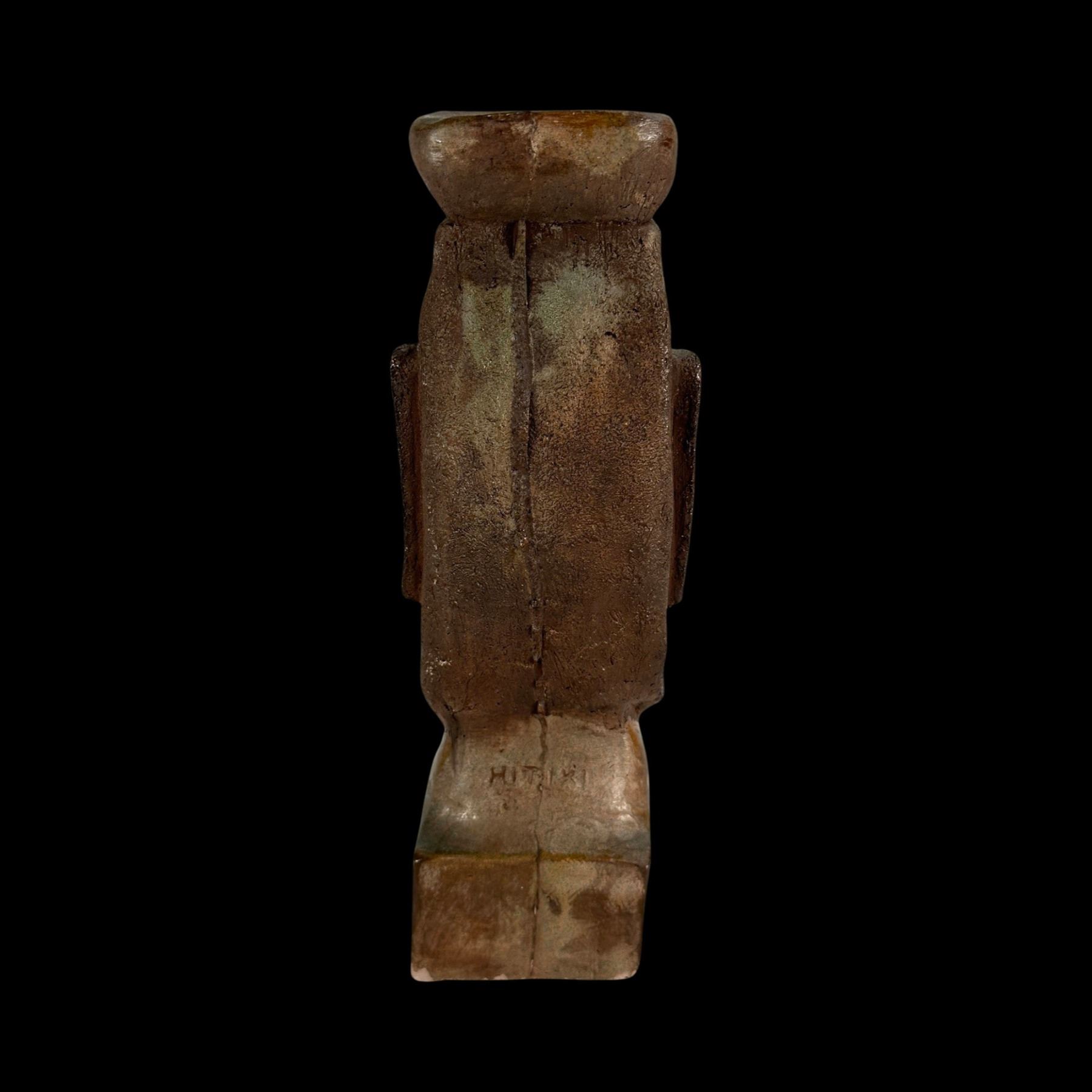 (1960s)* This is a miniature version of the giant Kahiki entrance Moais and can be used as an incense burner mimicking their flaming top knots. Jack Hite designed and hand manufactured these and other Tikis for the Beachcomber gift shop at the restaurant. He also created a good number of the full decor tikis in the venue. Very few of these were made and thusly, scarce. VG+ with typical wear. 3.5"x10.25"x3.5".