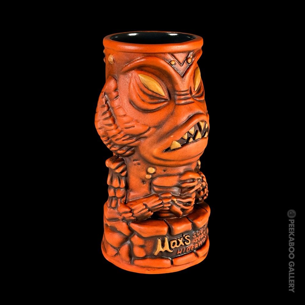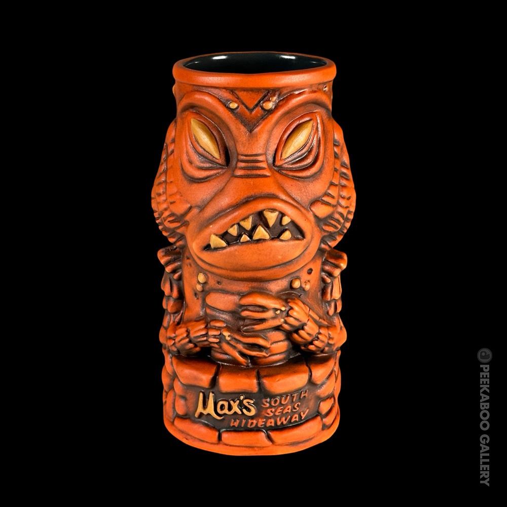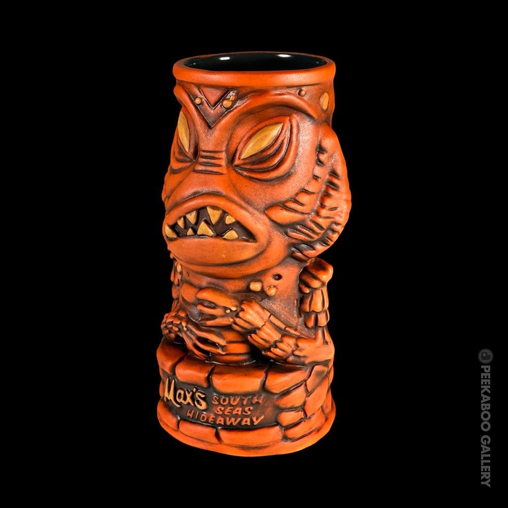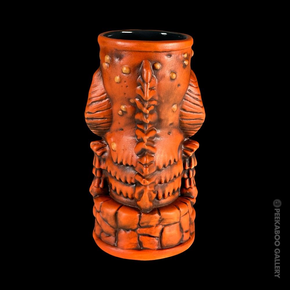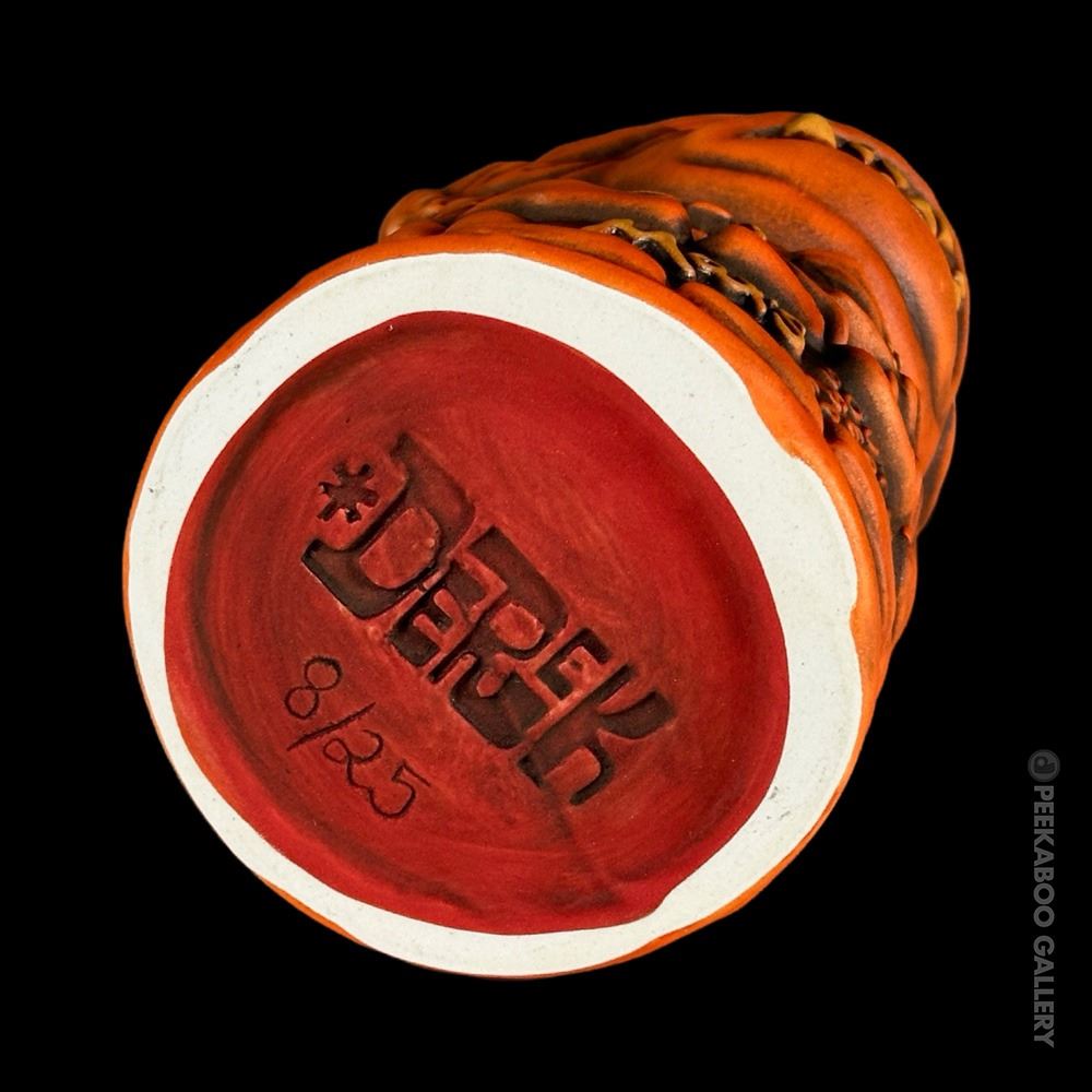 (2020) Numbered on bottom 8/25. The green first edition (200 pieces) was followed by a blue glaze edition (100 pieces) and this burnt orange glaze edition (25 pieces). Both the blue and orange versions are an inch shorter but they are also slightly wider and still hold same amount. VG+ with typical wear. 7"x3.5"dia.