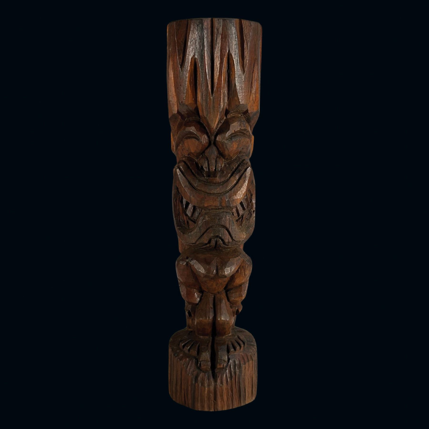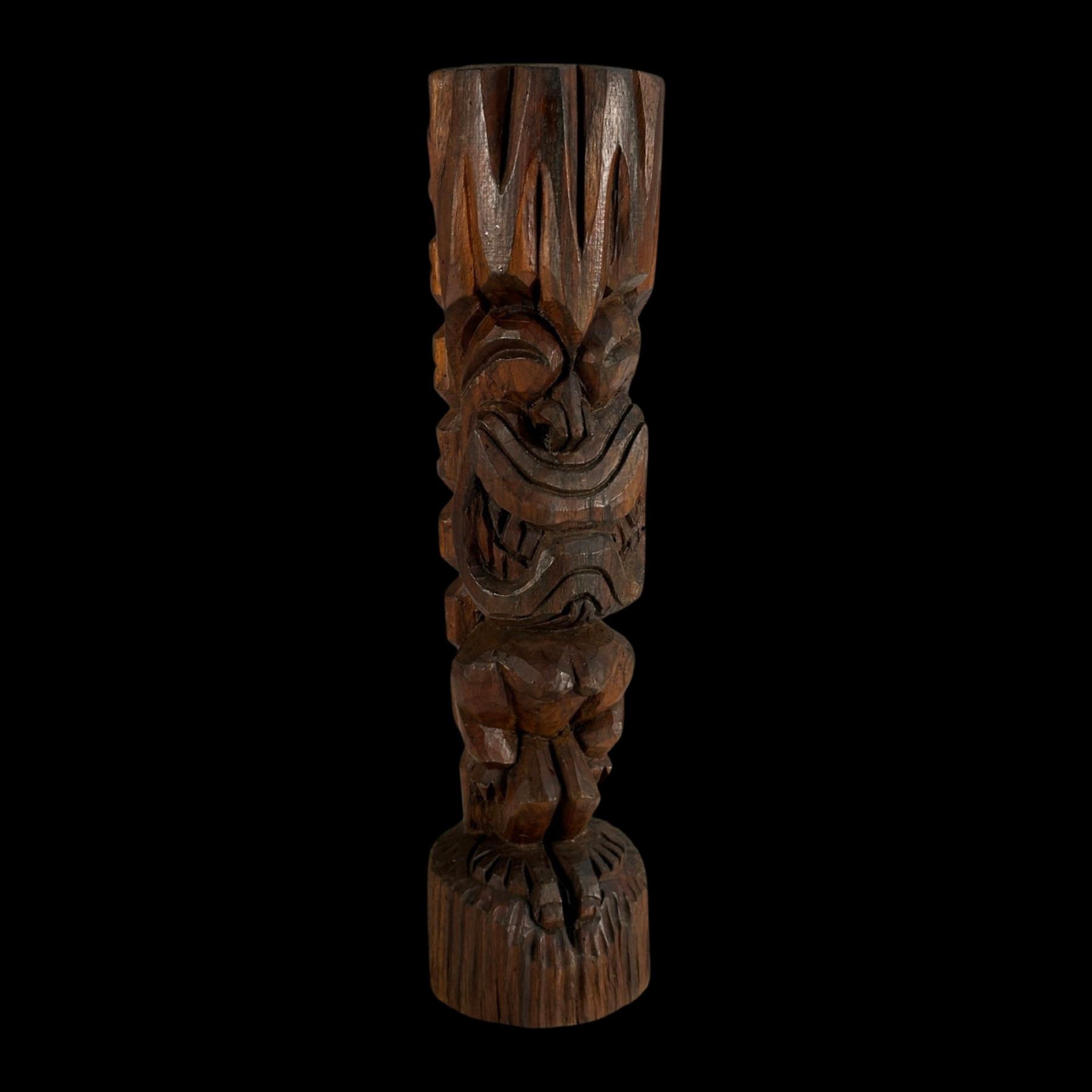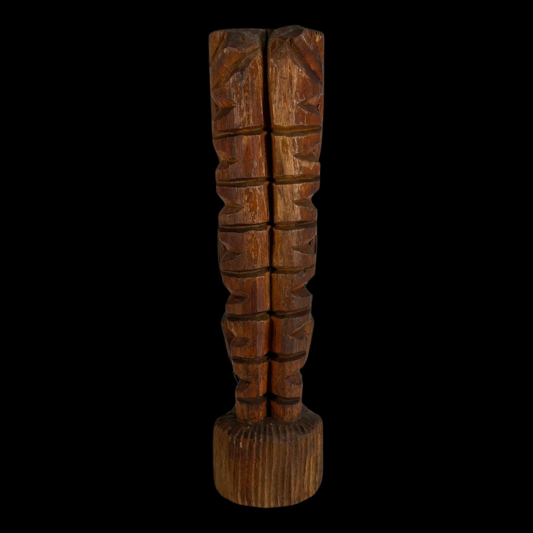 (1960s) A very detailed "Big Toe" figural Tiki from a student of the Kaulani Prison reform program. VG+. 10.5"x2.5".