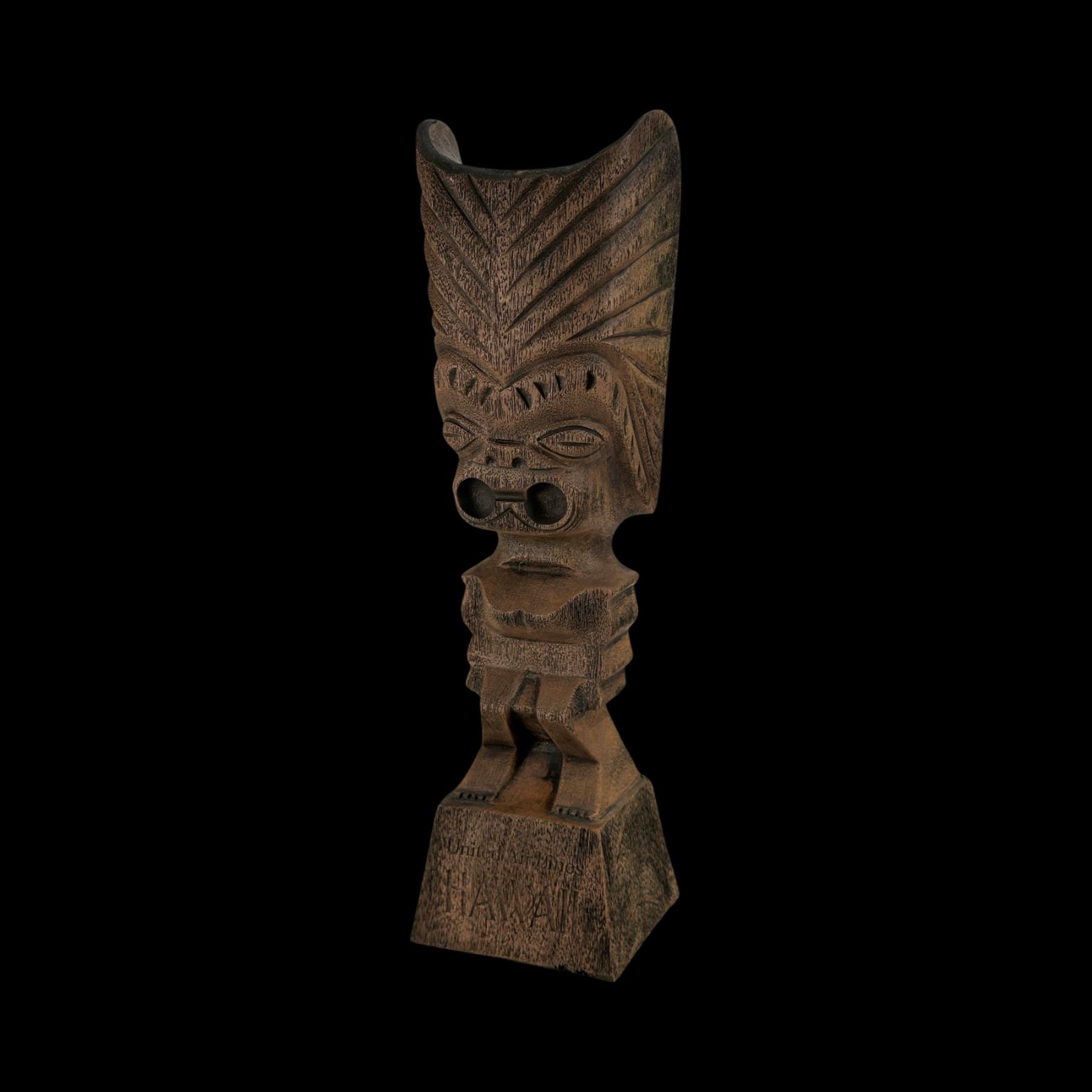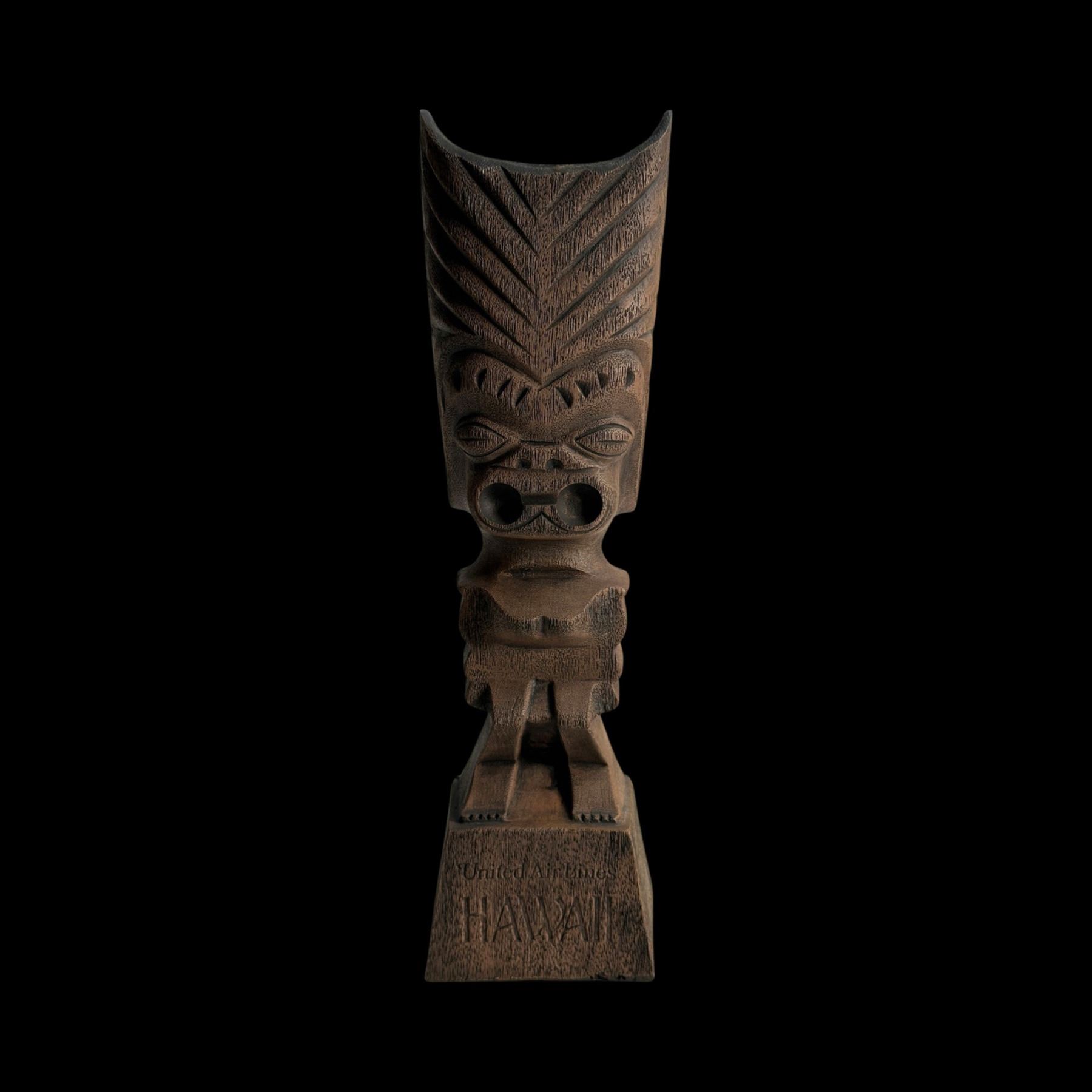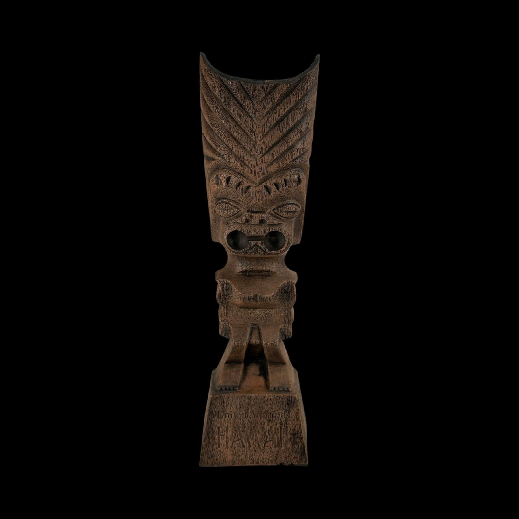 (1970s) The 70s marketing of United Airline was spot on. A figural composite Tiki on base. VG+. 4.25"x15"x3.5".