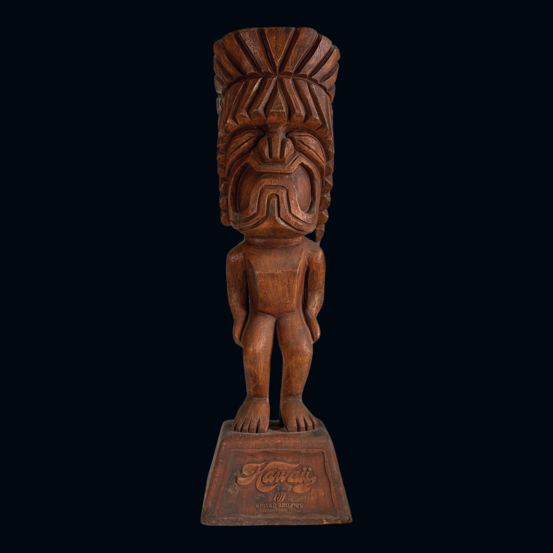 (1970s) A wonderful composite material point-of-sale advertising figure for United Airlines. Overall VG with some surface wear and one missing section of the lower feathered headdress. See photos. 9.5"x31"x8.5".