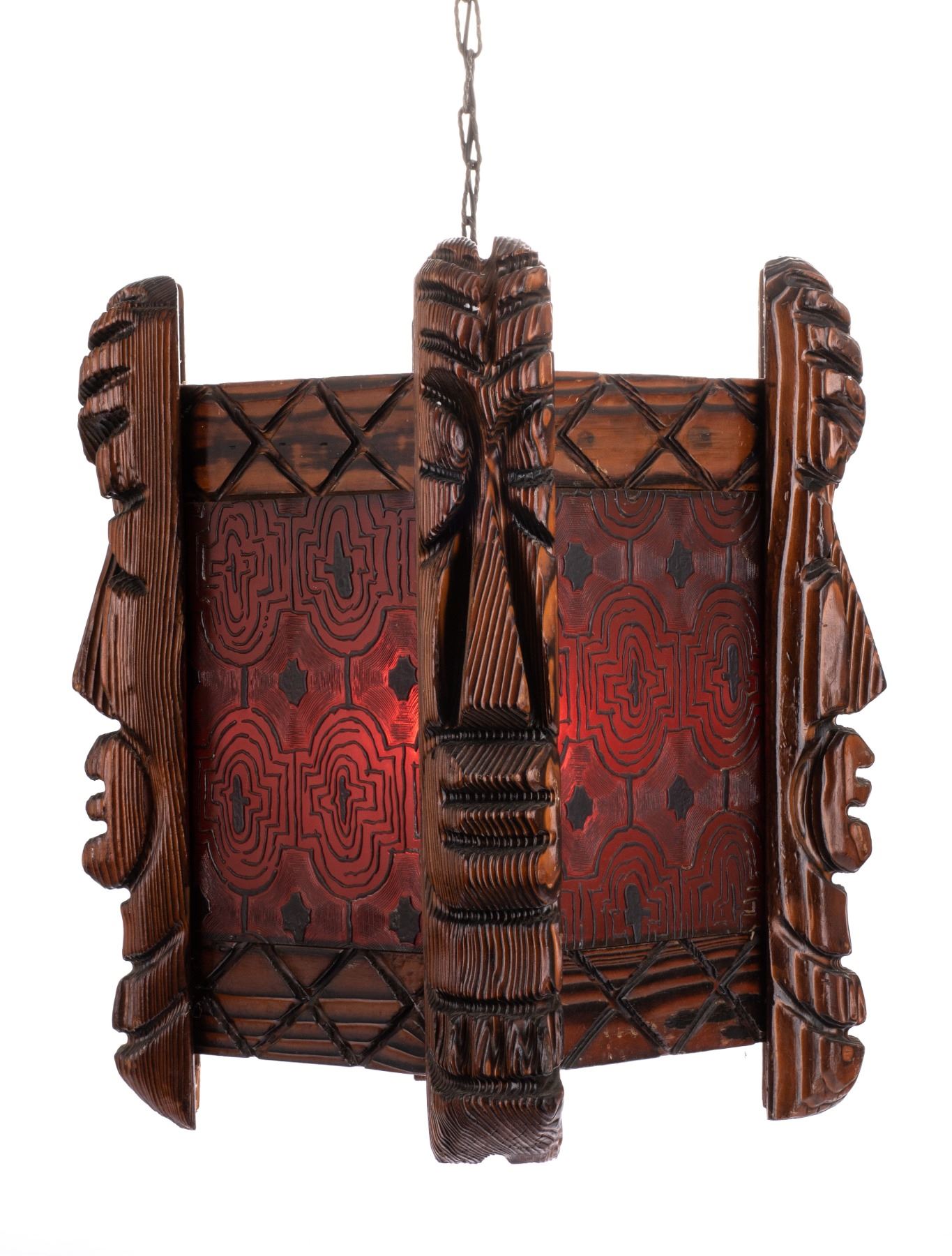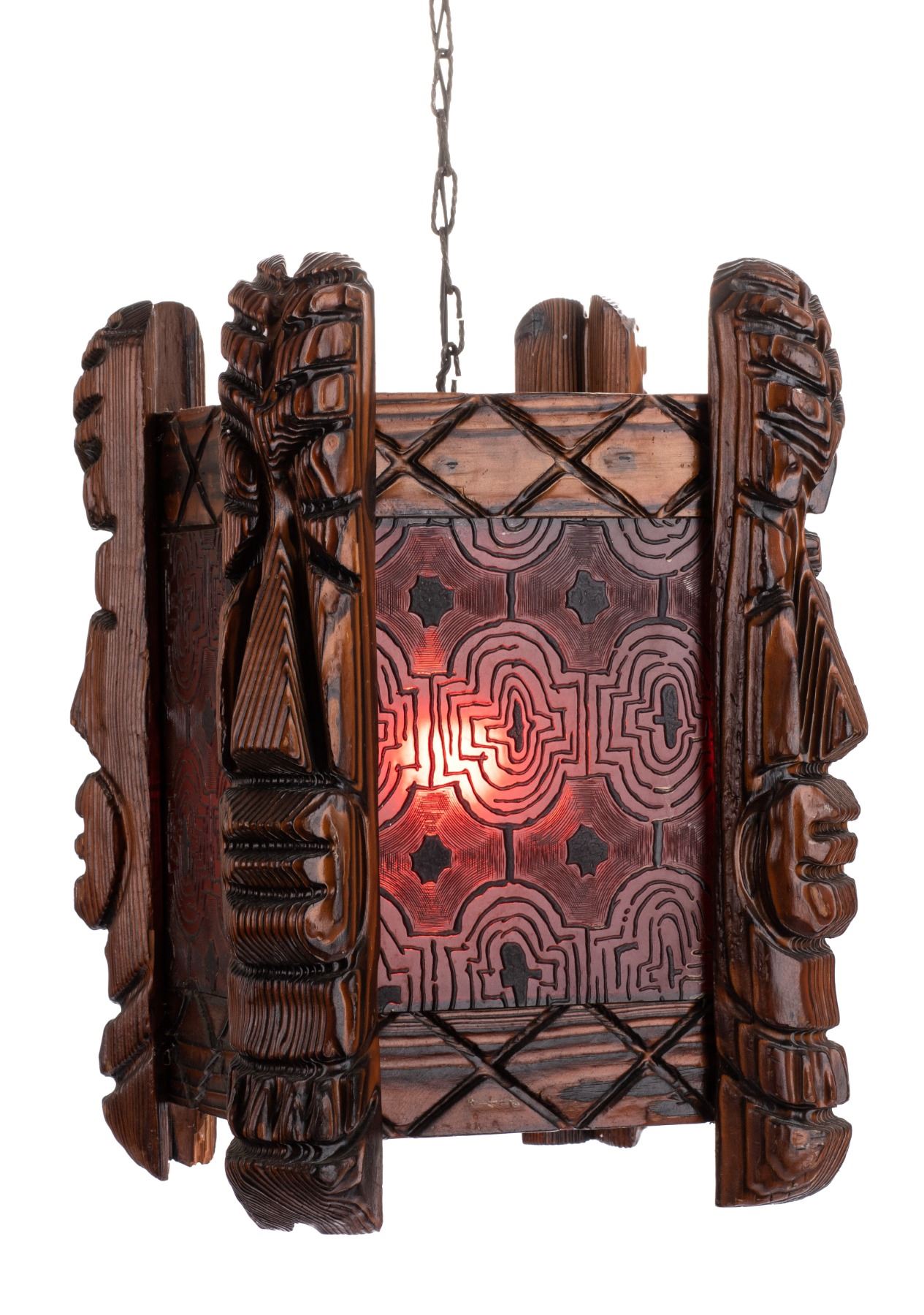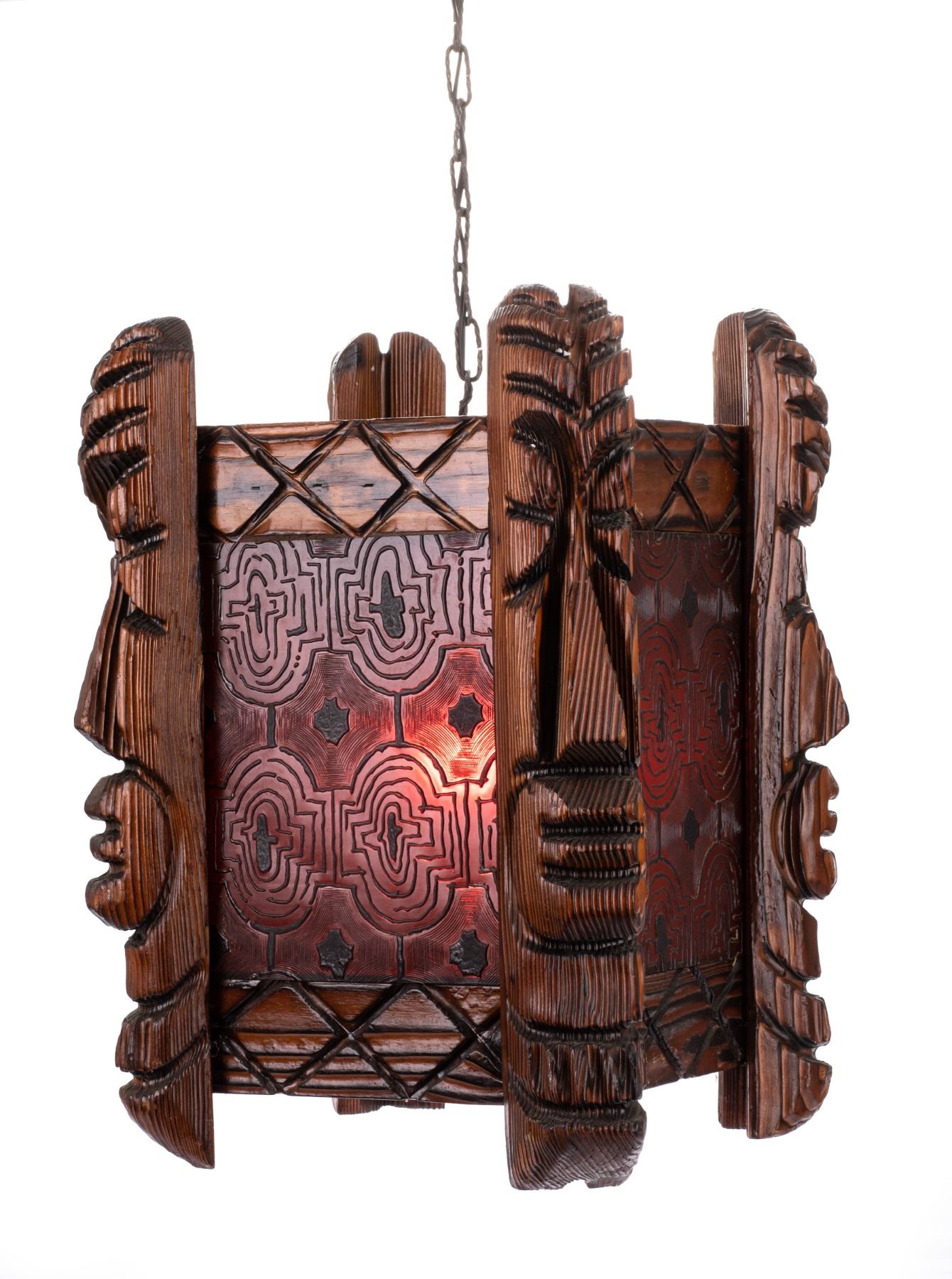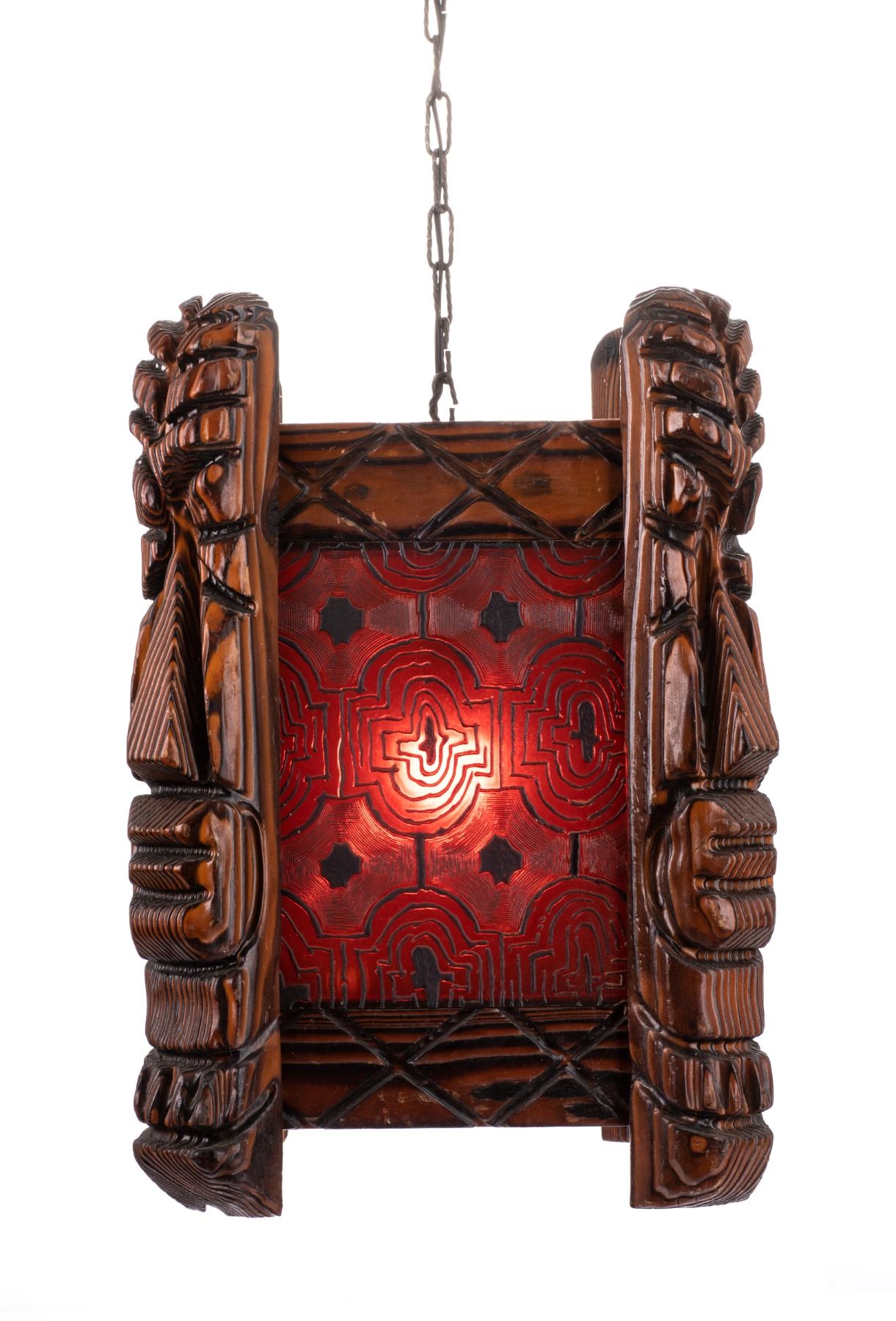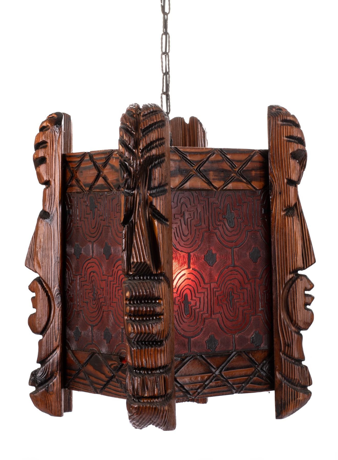 (1960s) Stunning WITCO hanging lamp features intricate design elements along with solid, practical quality with its wood and plastic craftsmanship. This durable lamp comes with hanging cord. It is possible this lamp in NOS (New Old Stock) in that we have not come across a vintage example in such good condition. A rare find. 24"x17"x17". VG+.